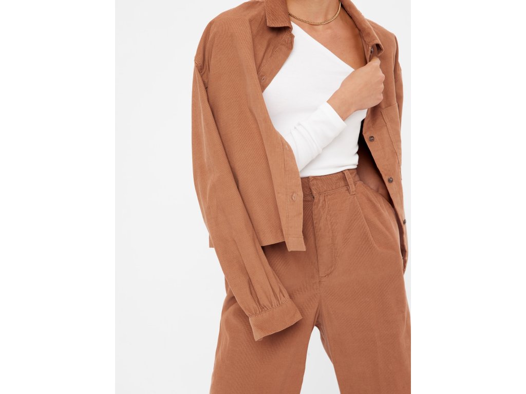 Dámske menčestrové nohavice. Vysoký pás je v zadnej časti pružný. Zapínanie na skrytý háčik a zips. Pútka na opasok. Predné šikmé vrecká. Zadné vrecká a pútka na opasok. Voľný strih nohavíc.Tento produkt je súčasťou nášho programu Washwell™ šetriaceho vodu. V porovnaní s bežnými spôsobmi prania, Washwell™ ušetril od roku 2016 milióny litrov vody. Viac sa dozviete na Gap for Good.