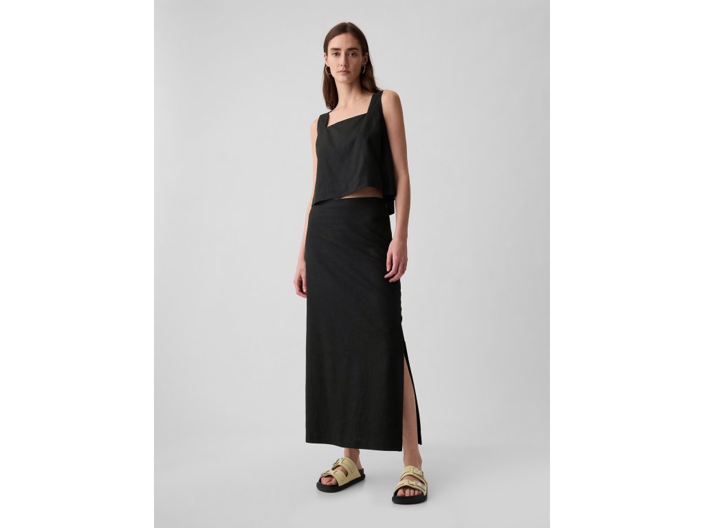 Dámska ľanová maxi sukňa. Materiál ľan a viskóza. Pružný pás a rozparok. Maxi dĺžka.Dodatočné parametre