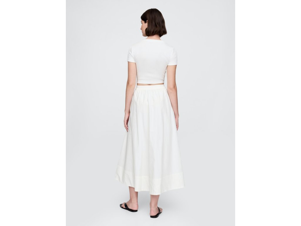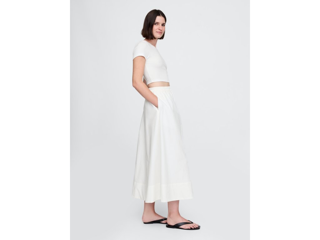 Táto elegantná maxi sukňa je vyrobená z ľahkého a vzdušného bavlneného popelínu, ktorý je príjemný na dotyk a poskytuje celodenné pohodlie. Vďaka svojej priedušnosti je ideálny pre teplejšie dni a ľahko sa kombinuje s rôznymi štýlmi. Elastický pás zaisťuje pohodlné nosenie a prispôsobí sa postave, zatiaľ čo praktické bočné vrecká dodávajú nielen štýl, ale aj funkčnosť. Sukňa je plne podšitá jemnou bavlnenou látkou, čo zaručuje maximálny komfort a nepriehľadnosť. Vyrobená s ohľadom na udržateľnosť – 100 % použitej bavlny je overené programom U.S. Cotton Trust Protocol, ktorý podporuje šetrné poľnohospodárske postupy znižujúce spotrebu vody a zlepšujúce biodiverzitu pôdy. Výroba prebieha v továrni, ktorá investuje do rodovej rovnosti a ich profesijného rozvoja prostredníctvom iniciatív RISE a P.A.C.E. Sukňa má voľný A-líniový strih, ktorý poskytuje pohodlie v oblasti pása aj bokov a smerom dole sa elegantne rozširuje. Dĺžkou siaha ku členkom, čo vytvára sofistikovaný a nadčasový vzhľad. Modelky vo veľkosti S (Gap) meria 172–180 cm a majú pás 60–66 cm a boky 84–97 cm. Modelky vo veľkosti XL (Gap) majú pás 86–91 cm a boky 114–127 cm.Dodatočné parametre