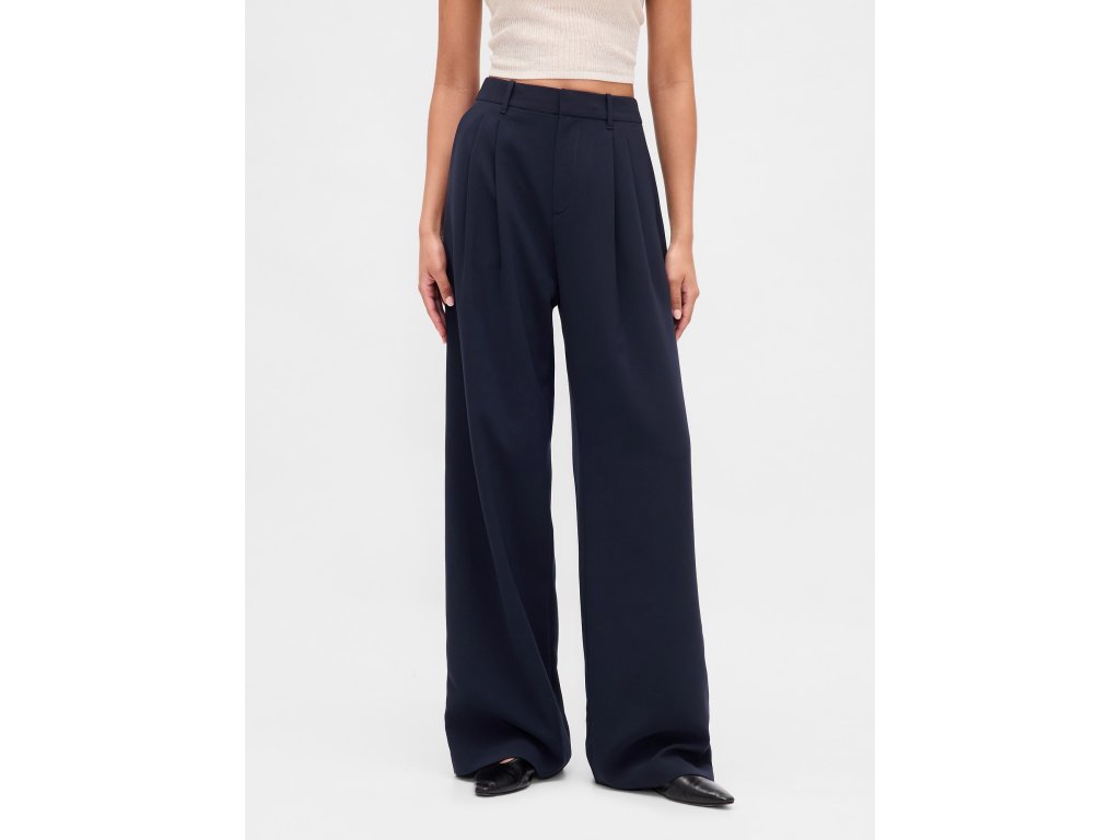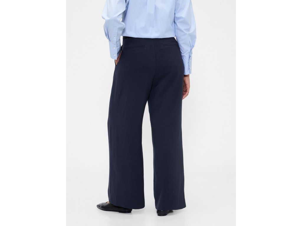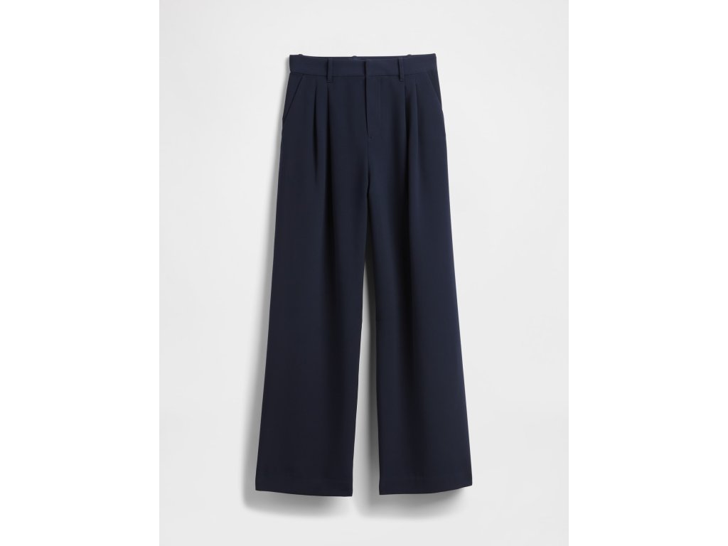 Dámske nohavice s vysokým pásom a širokými nohavicami sú ideálnou voľbou pre všestranný a pohodlný styling od rána do večera. Vyrobené z jemne strečovej tkaniny s ľahko štruktúrovaným povrchom, ktorá príjemne sedí na tele a umožňuje voľný pohyb počas celého dňa. Vysoký pás lichotí siluete, skryté zapínanie na háčik so zipsom pôsobí čisto a elegantne, zatiaľ čo elastická časť v zadnej časti pása zaisťuje pohodlie bez kompromisov. Predné sklady a šikmé vrecká dodávajú nohaviciam ležérnu eleganciu, zadné vrecká dotvárajú uhladený vzhľad. Klasický strih prilieha v páse a voľne padá cez boky a stehná, široké nohavice potom vytvárajú vzdušnú a modernú siluetu. Modelky vo veľkosti 4 meria 172–180 cm, majú obvod pása 60–66 cm a boky 84–97 cm. Modelky vo veľkosti 16 meria 172–180 cm, s pásom 86–91 cm a bokmi 114–127 cm.Dodatočné parametre