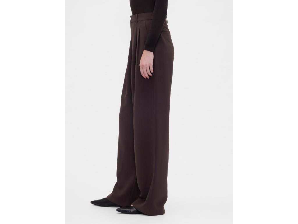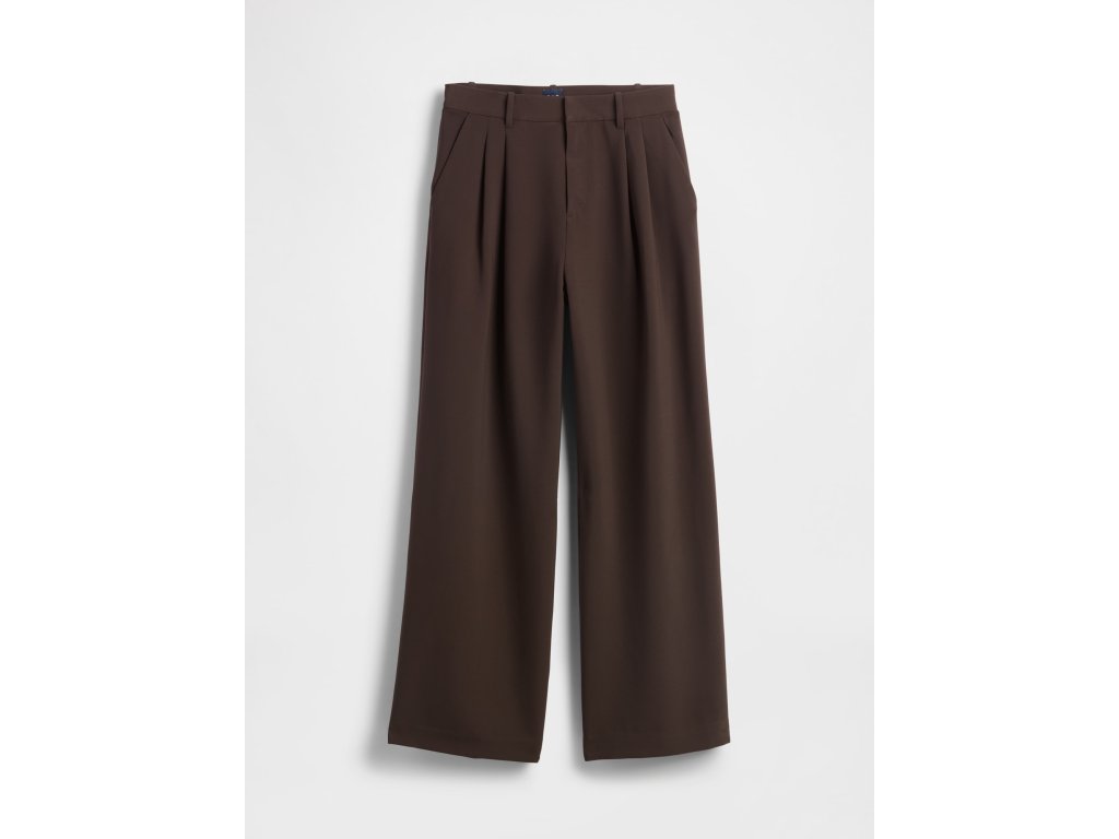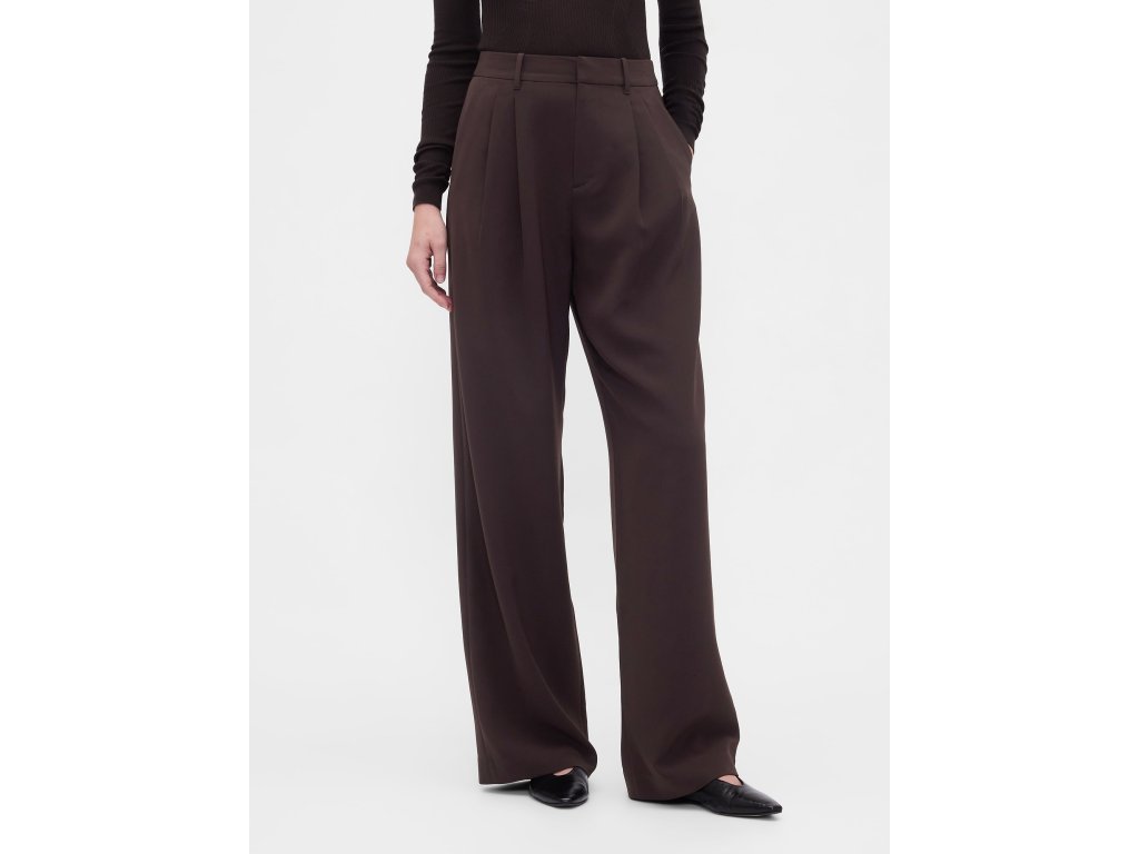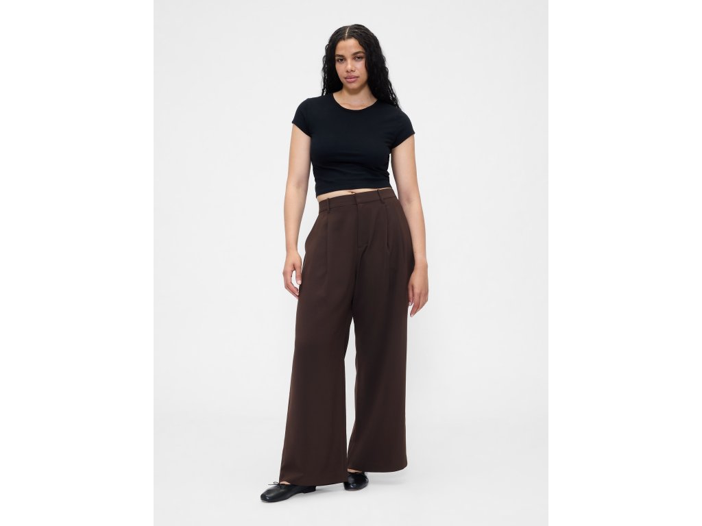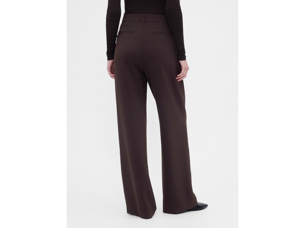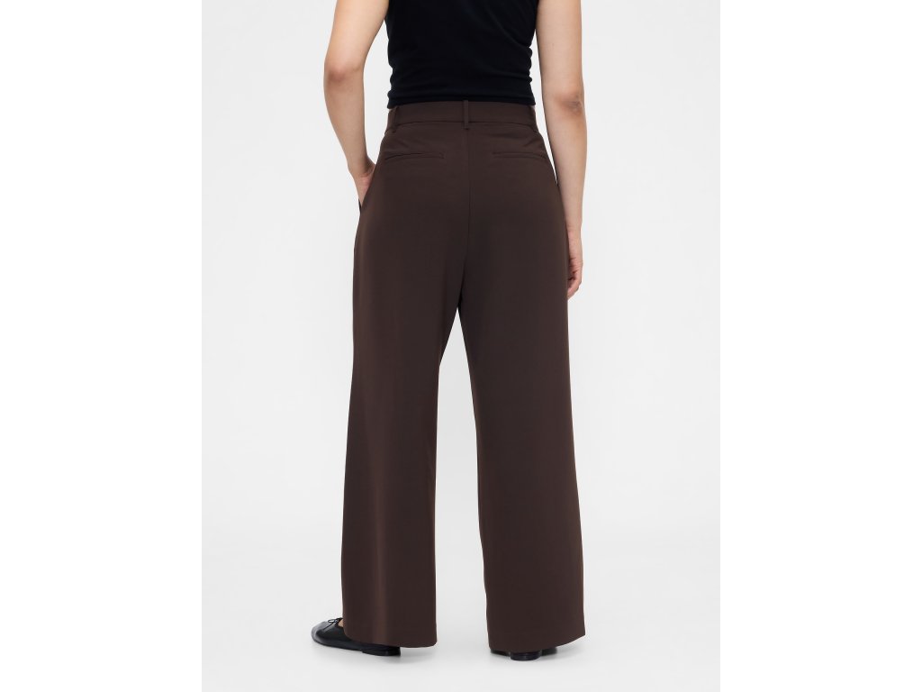 Dámske nohavice s vysokým pásom a širokými nohavicami sú ideálnou voľbou pre všestranný a pohodlný styling od rána do večera. Vyrobené z jemne strečovej tkaniny s ľahko štruktúrovaným povrchom, ktorá príjemne sedí na tele a umožňuje voľný pohyb počas celého dňa. Vysoký pás lichotí siluete, skryté zapínanie na háčik so zipsom pôsobí čisto a elegantne, zatiaľ čo elastická časť v zadnej časti pása zaisťuje pohodlie bez kompromisov. Predné sklady a šikmé vrecká dodávajú nohaviciam ležérnu eleganciu, zadné vrecká dotvárajú uhladený vzhľad. Klasický strih prilieha v páse a voľne padá cez boky a stehná, široké nohavice potom vytvárajú vzdušnú a modernú siluetu. Modelky vo veľkosti 4 meria 172–180 cm, majú obvod pása 60–66 cm a boky 84–97 cm. Modelky vo veľkosti 16 meria 172–180 cm, s pásom 86–91 cm a bokmi 114–127 cm.Dodatočné parametre