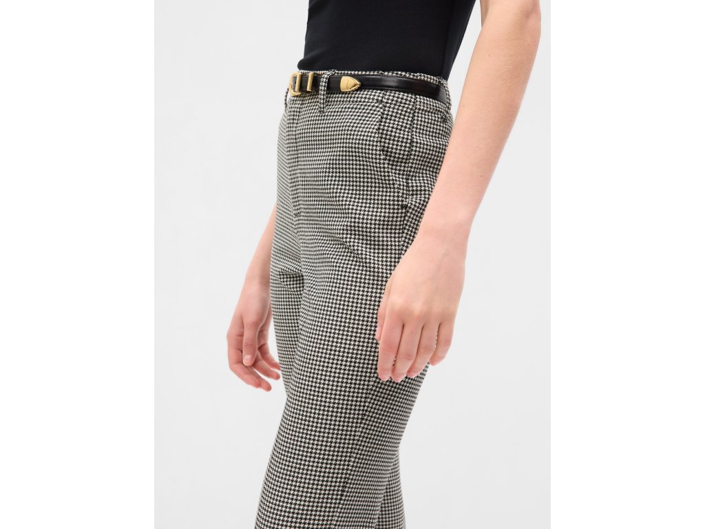 Dámske nohavice Stredne vysoký pás a dve zadné vrecká Zapínanie skryté na háčiky, gombík a zips Pás je pevný, pútka na opasok Kratšia dĺžka.Dodatočné parametre