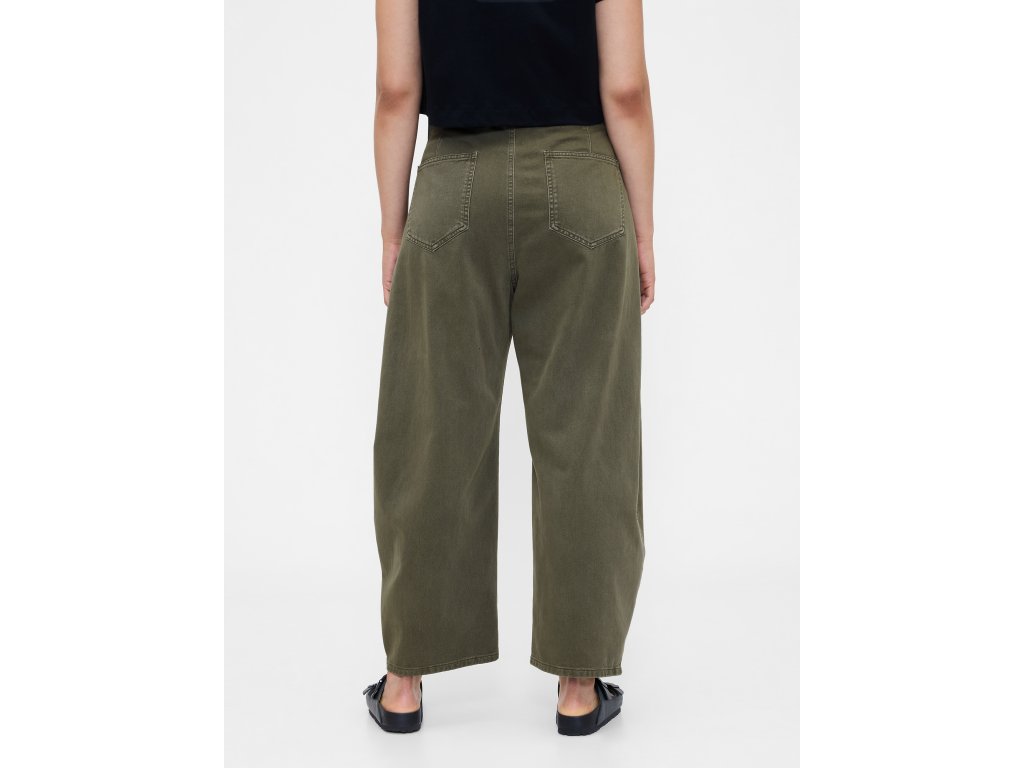 Dámske nohavice z bavlneného kepru s barelovými nohavicami prinášajú pohodlie, kvalitné spracovanie a moderný strih na každodenné nosenie. Mäkký bavlnený keper je príjemný na dotyk a dobre drží tvar. Nohavice majú zapínanie na háčik a zips, bočné všité vrecká na praktické uloženie drobností a zadné našité vrecká na ležérny vzhľad. Uvoľnený strih s barelovými nohavicami sa mierne zužuje smerom ku členkom a vytvára pohodlnú a štýlovú siluetu, ktorá lichotí postave. Tento produkt bol vyrobený v továrni zapojenej do programu RISE na podporu rodovej rovnosti a posilňovanie postavenia žien. Modelky vo veľkosti 4 meria 172–180 cm, majú obvod pása 60–66 cm a boky 84–97 cm. Modelky vo veľkosti 16 meria 172–180 cm, s pásom 86–91 cm a bokmi 114–127 cm.Dodatočné parametre