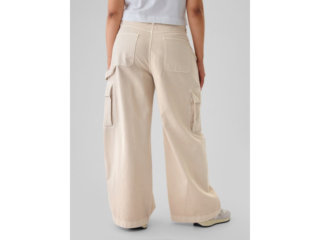 Dámske mäkké bavlnené baggy nohavice. Skryté zapínanie na háčik a gombík, zips. Vrecká vpredu, vzadu a na bokoch. Klasický strih, prispôsobený v páse a voľnejší cez boky a stehná. Vyrobené zo 100% regeneračnej bavlny, pestovaná pomocou holistických poľnohospodárskych praktík. Modelka meria približne 178 cm a nosí veľkosť S (4). Modelka meria približne 178 cm a nosí veľkosť L (14).Dodatočné parametre