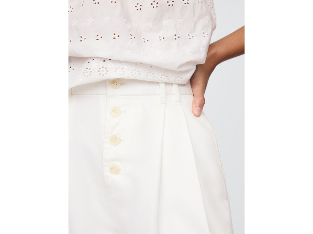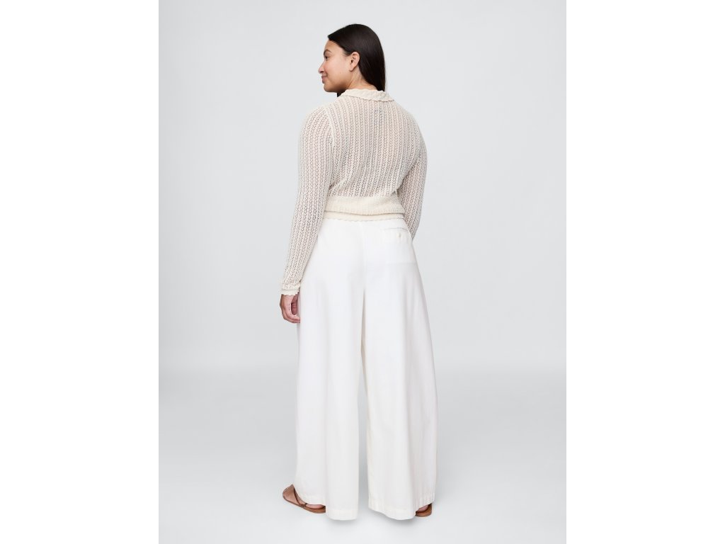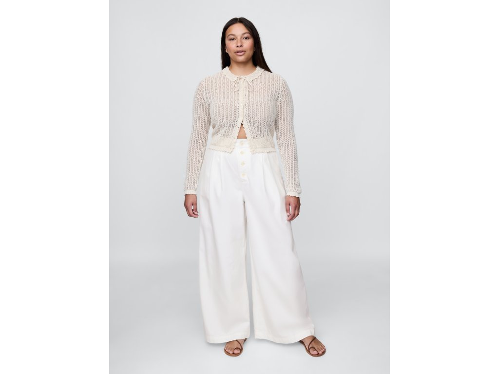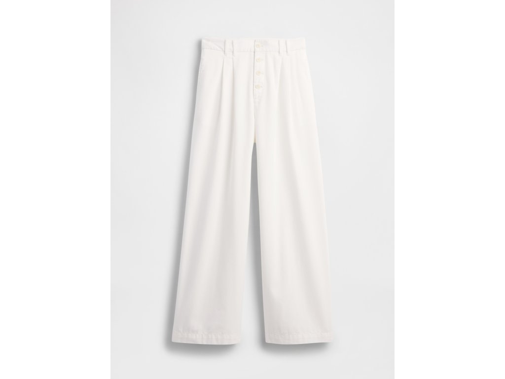 Dámske široké nohavice z bavlnenej zmesi z kolekcie Gap × DÔEN prinášajú nadčasový štýl a pohodlie v elegantnej siluete. Navrhnuté v rámci spolupráce Gap × DÔEN, ktorá oslavuje klasické tvary v modernom podaní, s dôrazom na štruktúru, jemnosť a ženský výraz. Vyrobené z mäkkej bavlnenej zmesi, ktorá je príjemná na dotyk a vhodná aj na celodenné nosenie. Nohavice majú vysoký pás, ktorý lichotí postave, zapínanie na gombíkovú légu a predné sklady, ktoré elegantne zvýrazňujú siluetu. Šikmé vrecká vpredu a vrecká vzadu podčiarkujú prepracovaný vzhľad, zatiaľ čo široké nohavice poskytujú voľnosť pohybu a sofistikovaný efekt – perfektný pre kombináciu s blúzkou, topom alebo sakom. Tento model pochádza z eticky zodpovednej výroby – z továrne zapojenej do programov RISE a P.A.C.E. spoločnosti Gap Inc., ktoré podporujú rodovú rovnosť, profesijný rozvoj a posilnenie postavenia žien v textilnom priemysle. Klasický strih pohodlne padne v páse a je voľnejší cez boky a stehná, vysoký pás vytvára lichotivý tvar a široké nohavice dodávajú celkovému vzhľadu eleganciu. Modelky vo veľkosti 4 meria 172–180 cm, majú pás 60–66 cm a boky 84–97 cm. Modelky vo veľkosti 16 majú pás 86–91 cm a boky 114–127 cm.Viac z kolekcia Gap × DÔEN > .