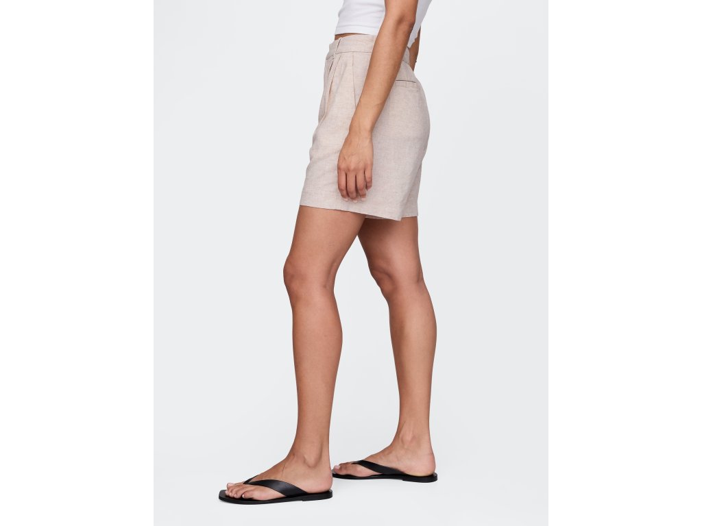 Dámske kraťasy z mäkkej zmesi ľanu a viskózy sú dokonalou kombináciou ľahkosti, elegancie a pohodlia. Majú elastický pás s diskrétnym zapínaním na háčik a zips, čo zaisťuje elegantný vzhľad a jednoduché nosenie. Predné sklady dodávajú kraťasom štruktúrovaný a sofistikovaný dizajn, zatiaľ čo šikmé vrecká vpredu a zadné vrecká pridávajú praktické detaily. Kraťasy sú súčasťou programov RISE a P.A.C.E., ktoré podporujú rodovú rovnosť a posilňovanie postavenia žien vo výrobných podnikoch. Ľahká zmes ľanu poskytuje príjemnú priedušnosť a mäkkosť, čo robí tieto kraťasy ideálnou voľbou pre teplé dni. Klasický strih jemne obopína pás a je uvoľnený cez boky a stehná, čím zaisťuje maximálne pohodlie a voľnosť pohybu. Vnútorná dĺžka nohavíc je 10 cm, čo z nich robí univerzálny kúsok pre ležérne aj elegantné príležitosti. Modelky nosia veľkosť S (výška 172–180 cm, pás 60–66 cm, boky 84–97 cm) a veľkosť XL (výška 172–180 cm, pás 86–91 cm, boky 114–127 cm).Dodatočné parametre