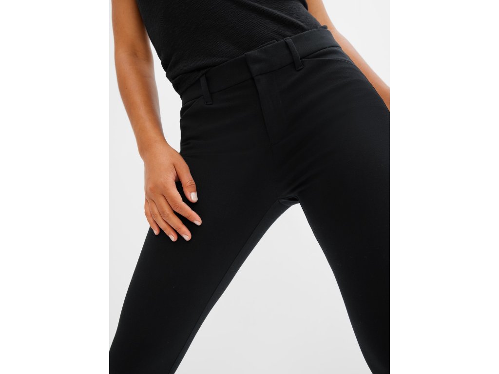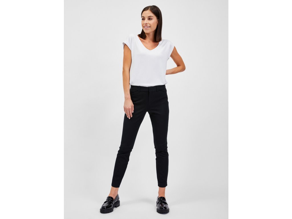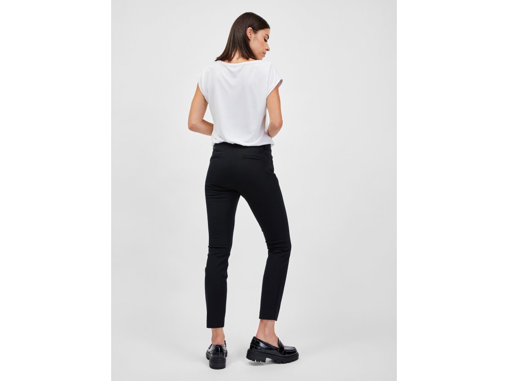 Dámske nohavice z hladkého strečového materiálu kombinujú klasický vzhľad s moderným strihom a pohodlím pri nosení. Stredne vysoký pás, úzky strih cez boky a stehná a zúžené nohavice siahajúce ku členkom vytvárajú nadčasovú siluetu, ktorá lichotí postave. Zapínanie na skrytý háčik a zips dopĺňajú šikmé vrecká vpredu a zadné vrecká pre čistý a upravený vzhľad. Vďaka pružnému materiálu sa nohavice ľahko prispôsobia pohybu, držia tvar a skvele sadnú. Ideálna voľba do kancelárie, na schôdzky aj formálnejšie príležitosti. Modelka meria 178 cm, má pás 61 cm, boky 89 cm a oblieka veľkosť S (US 4).Dodatočné parametre