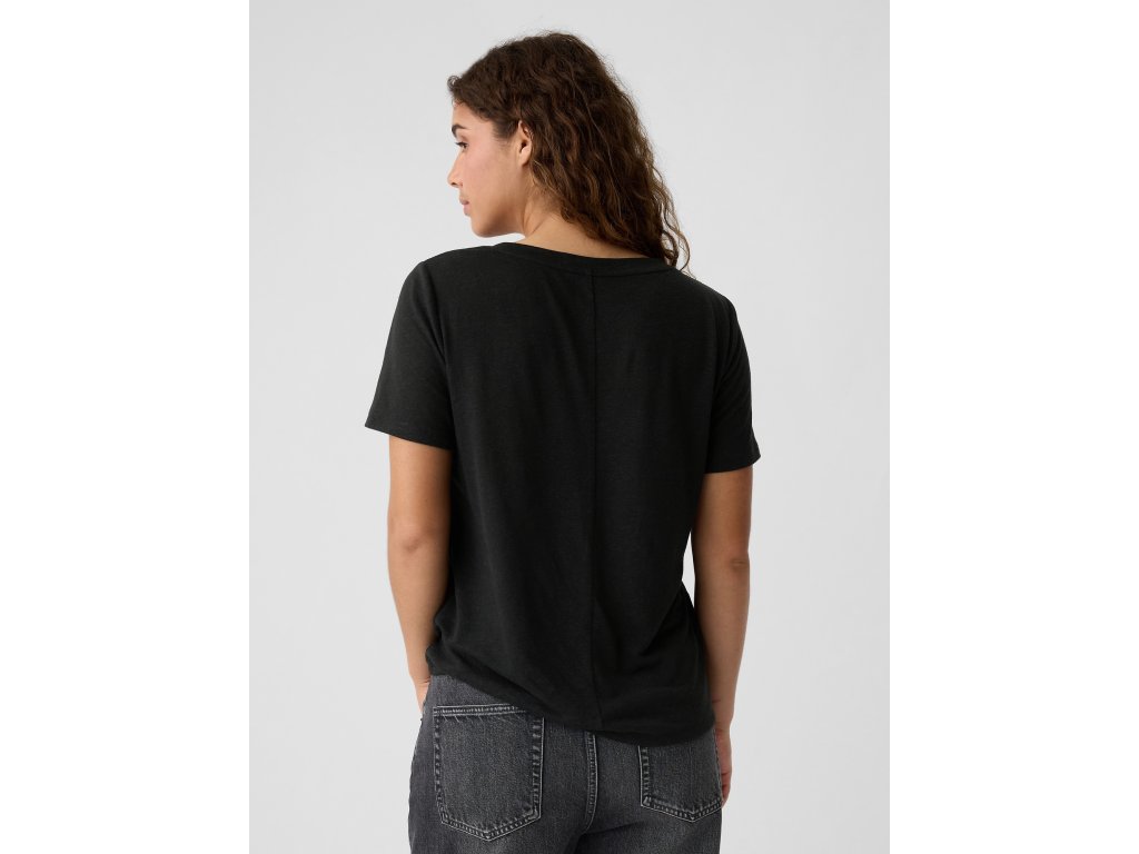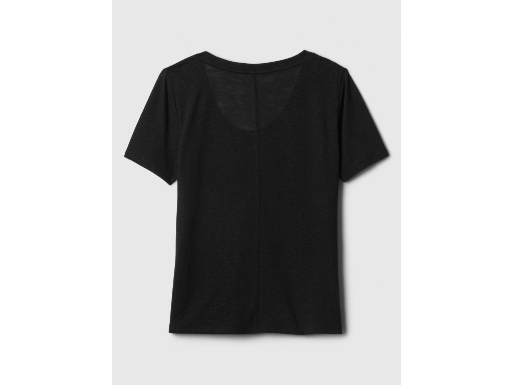 Dámske ľanové tričko. S hlbokým výstrihom. Krátky rukáv a rovný strih. Materiál ľan a polyester.Dodatočné parametre