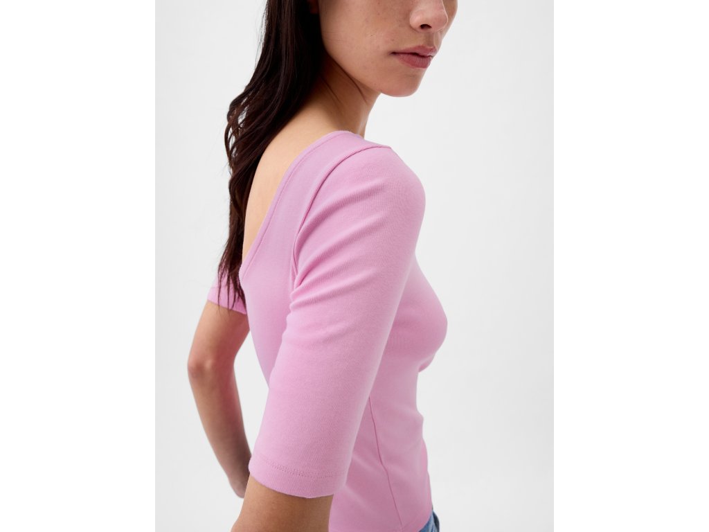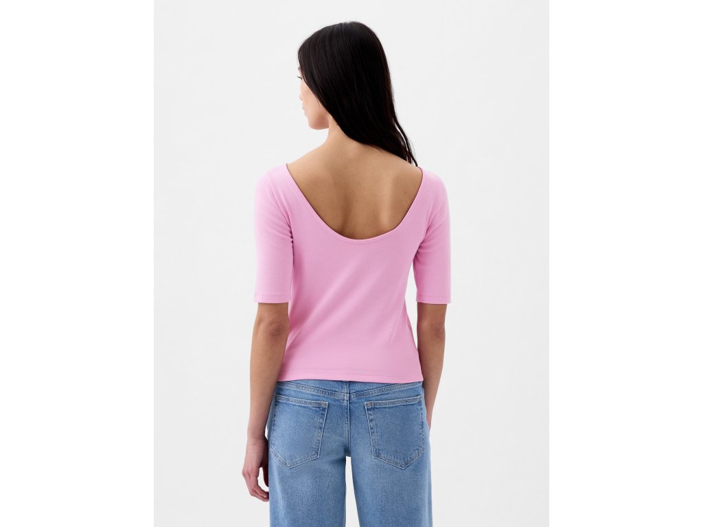Dámske jednofarebné tričko. Lodičkový výstrih. Hlboký výstrih na chrbte. Krátke rukávy. Slim strih a crop dĺžka. Príjemný materiál bavlna a modal.Dodatočné parametre
