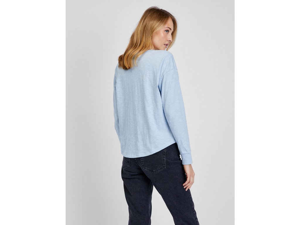 Dámske tričko s drobným logom. Dlhé spadnuté rukávy s nápletom. Okrúhly výstrih a zaoblený spodný lem. Široký a kratší strih.Dodatočné parametre