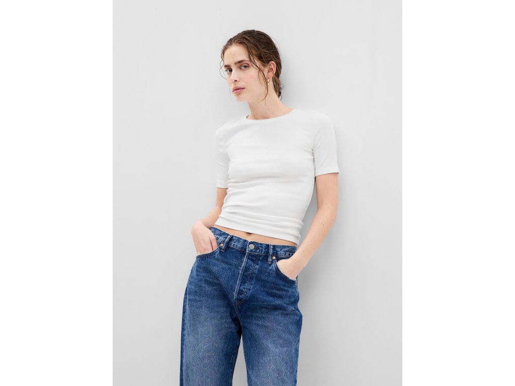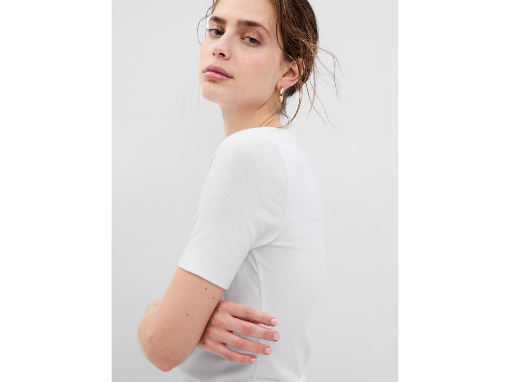 Dámske basic tričko. Krátky rukáv a okrúhly výstrih ku krku. Rovný strih a kratšia dĺžka. Mäkký úplet z bavlny a modalu.Dodatočné parametre