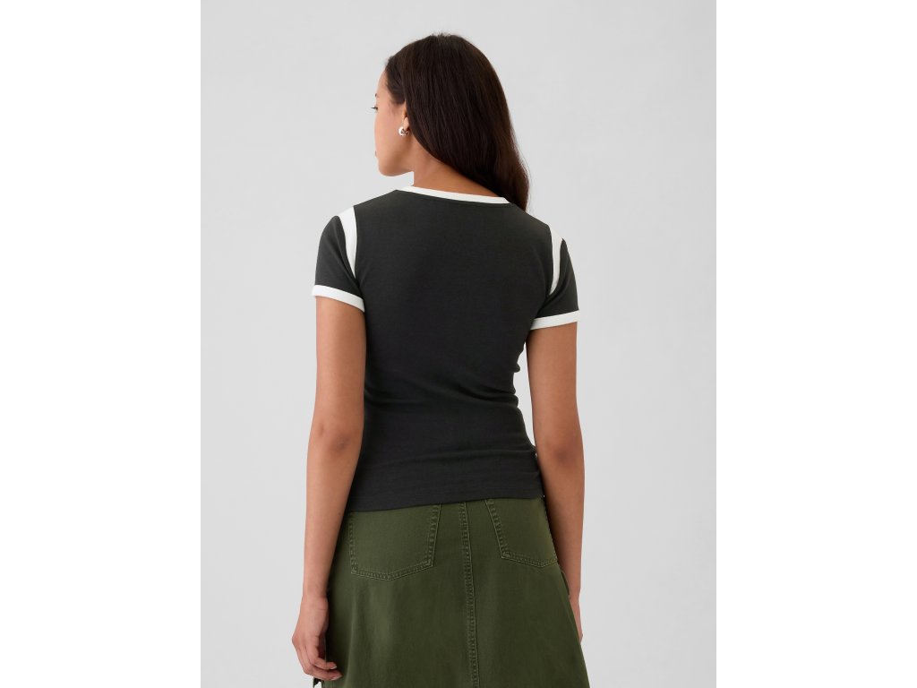 Dámske tričko z bavlneno-modalovej zmesi. Okrúhly výstrih. Krátke rukávy. Malé Gap logo. Priliehavý strih. Ľahko skrátené, končí nad bokmi. Výška modelky je 172–180 cm, s pásom 60–66 cm a bokmi 84–97 cm. Modelka nosí veľkosť S.Dodatočné parametre