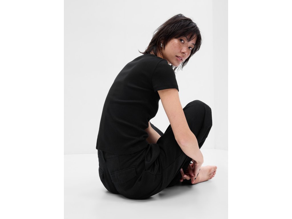 Dámske jednofarebné tričko. Pružný rebrovaný vzor. Vyšité logo Gap. Krátky rukáv a výstrih ku krku. Úzky strih.Dodatočné parametre