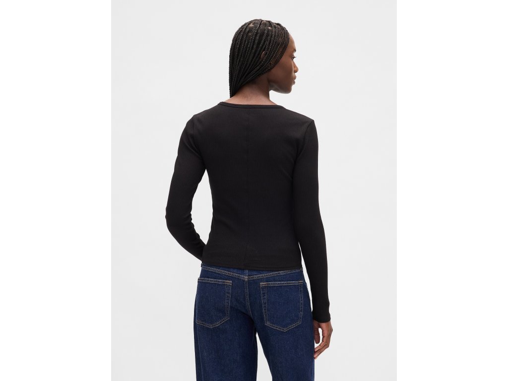 Dámske tričko z mäkkej a pružnej zmesi bavlny a modalu sa pohodlne prispôsobí postave a rýchlo sa stane základom každodenného outfitu. Rebrovaný úplet dodáva modernú štruktúru, okrúhly výstrih a dlhé rukávy podčiarkujú nadčasový vzhľad. Na prednej strane nechýba ikonické logo Gap. Strih Stretch-to-Fit jemne obopína telo, zvýrazňuje siluetu a pritom zostáva pohodlný. Skrátená dĺžka siaha do pása - skvele ladí s džínsami s vyšším pásom alebo so sukňou.Dodatočné parametre