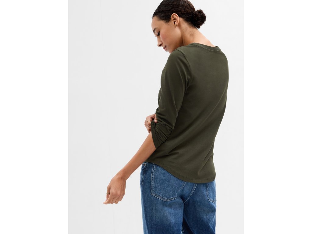 Dámske tričko s logom Dlhé rukávy s nápletom Okrúhly výstrih Zaoblený spodný lem Jednofarebné.Dodatočné parametre