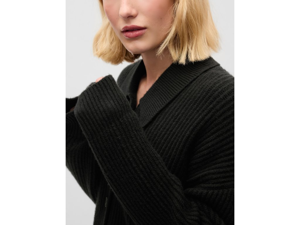 Mäkký rebrovaný sveter z bavlnenej zmesi, ktorý vám poskytne pocit luxusu každý deň. Zapínanie na gombíky. Dlhé rukávy. Sveter je vyrobený z plyšovej priadze strednej hmotnosti, ktorá je vďaka špeciálnej kefovacej technike neuveriteľne jemná na dotyk. Uvoľnený a pohodlný strih, ktorý ľahko padne na každú postavu. Pre klasický vzhľad zvoľte o jednu veľkosť menšiu. Modelky vo veľkosti S: výška 172–180 cm, majú obvod pása 60–66 cm a boky 84–97 cm. Modelky vo veľkosti XL: výška 172–180 cm, majú obvod pása 86–91 cm a boky 114–127 cm.Dodatočné parametre