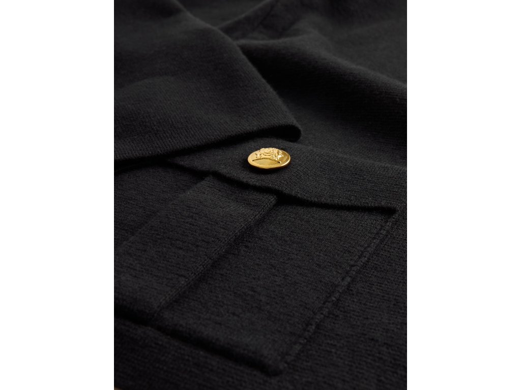 Dámsky kardigan z hrejivej zmesi vlny, bavlny a nylonu v modernej skrátenej dĺžke. Okrúhly výstrih, dlhé rukávy a zapínanie na gombíky po celej dĺžke. Prednú časť dopĺňajú vrecká s chlopňou a ozdobnými gombíkmi. Strih Relaxed je rovný a uvoľnený. Skrátená dĺžka siaha do pása. Vyrobené v továrni zapojenej do programu RISE podporujúceho rovnosť žien a mužov. Modelka vo veľkosti S meria 172–180 cm, má pás 60–66 cm a boky 84–97 cm. Modelka vo veľkosti XL meria 172–180 cm, má pás 86–91 cm a boky 114–127 cm. Pokiaľ preferujete užší strih, odporúčame zvoliť o jednu veľkosť menšiu.Dodatočné parametre