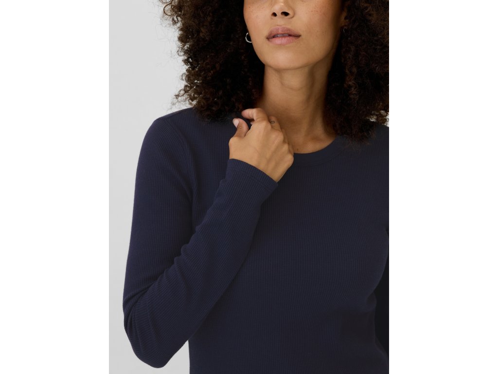 Mäkké tričko s vaflovým vzorom pre pohodlný a štýlový vzhľad. Dlhé rukávy na extra teplo a komfort. Okrúhly výstrih. Zakrivený lem dodáva eleganciu a jemný ženský nádych. Rovný, ľahko padnúci strih. Dĺžka končiaca pri bokoch. Perfektná voľba pre tých, ktorí hľadajú kombináciu pohodlia a štýlu v jednom kúsku.Dodatočné parametre