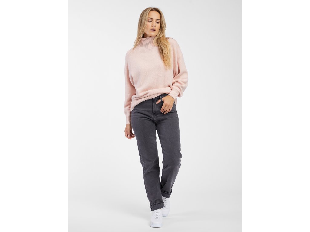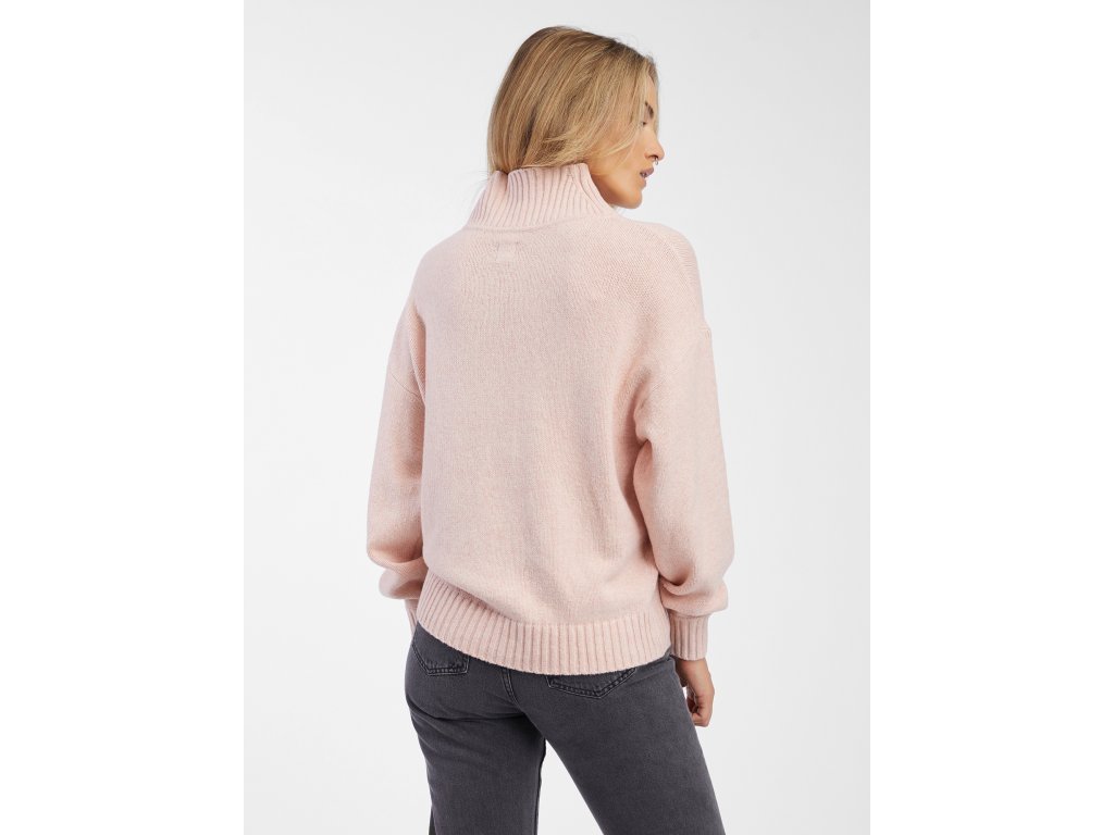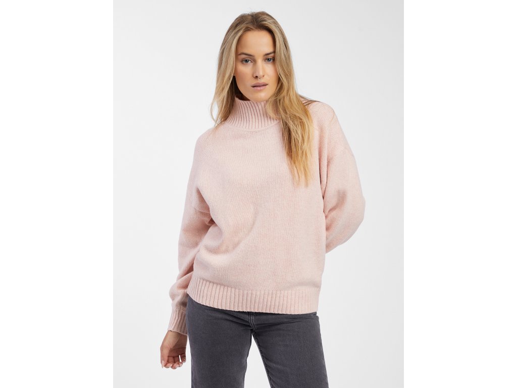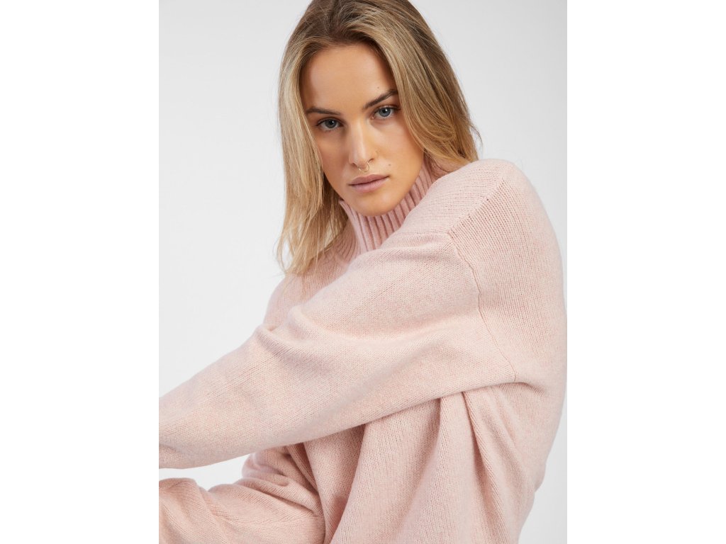 Dámsky jednofarebný sveter. Pri krku rebrovaný stojačik. Spadnuté dlhé rukávy s nápletmi. Mäkká pletenina.CashSoft je ľahký, hebký, mäkký ako kašmír. Luxusný, ale nenáročný na údržbu.