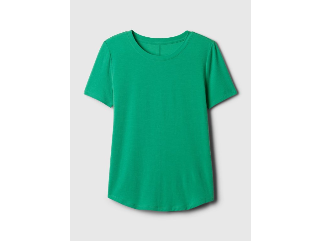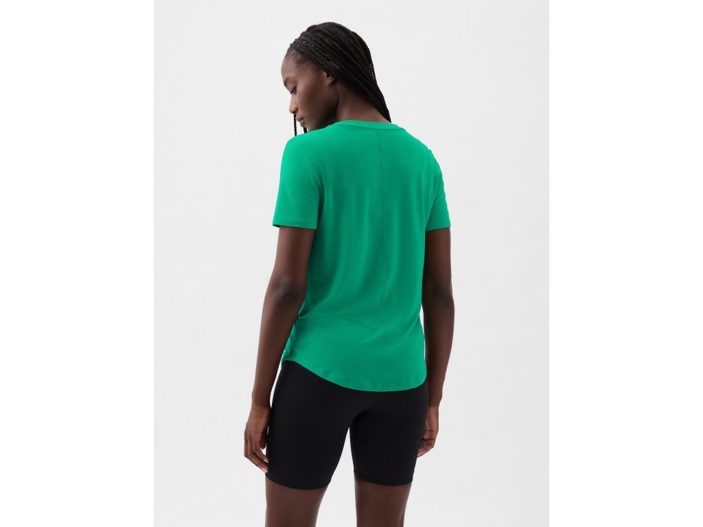 Mäkké strečové dámske športové tričko. Okrúhly výstrih. Krátke rukávy. Naša ľahká a priedušná tkanina s technológiou odvodu vlhkosti, ktorá odvádza pot od tela a udržuje vás v suchu a pohodlí. Rovná silueta s voľným strihom. Dĺžka po boky. Modelky nosiacej veľkosť Gap S sú 172 cm – 180 cm vysoké s pásom 60 cm – 66 cm a bokmi 84 cm – 97 cm. Modelky nosiacej veľkosť Gap XL sú 172 cm – 180 cm vysoké s pásom 86 cm – 91 cm a bokmi 114 cm – 127 cm.Viac z kolekcia GapFit >.