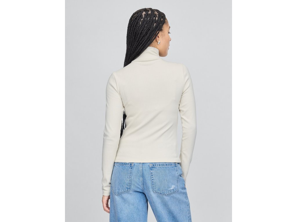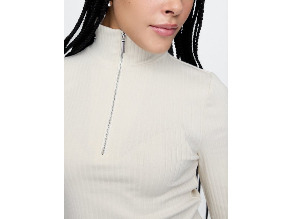 Pohodlný a štýlový sveter z mäkkého rebrovaného úpletu v kombinácii bavlny a modalu, ktorý je pružný a prispôsobí sa vašej postave. Elegantný stojačik s polovičným zipsom a dlhé rukávy. Sveter má priliehavý strih „Stretch-to-Fit“, ktorý tvaruje vašu siluetu. Skvele sa hodí na vrstvenie aj nosenie samostatne. Modelky vo veľkosti S meria 172–180 cm, majú obvod pása 60–66 cm a boky 84–97 cm. Modelky vo veľkosti XL majú pás 86-91 cm a boky 114-127 cm.Dodatočné parametre