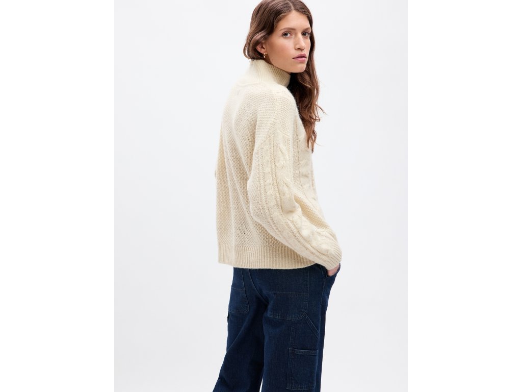 Dámsky sveter s rolákom. S vrkôčikovým vzorom. Dlhé rukávy. Mäkká pletenina s prímesou vlny. Jednofarebný.Dodatočné parametre