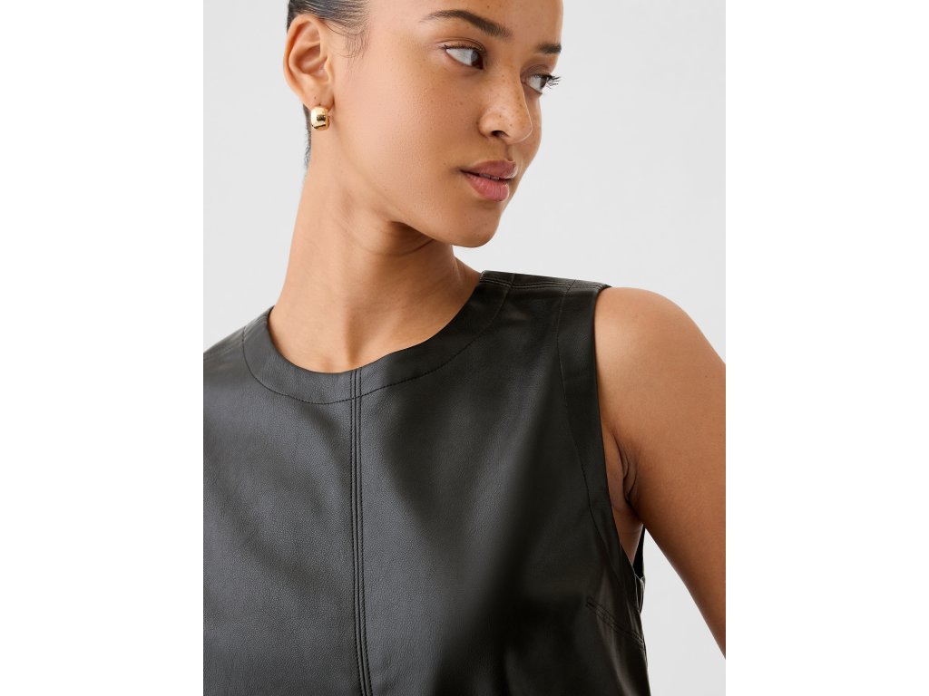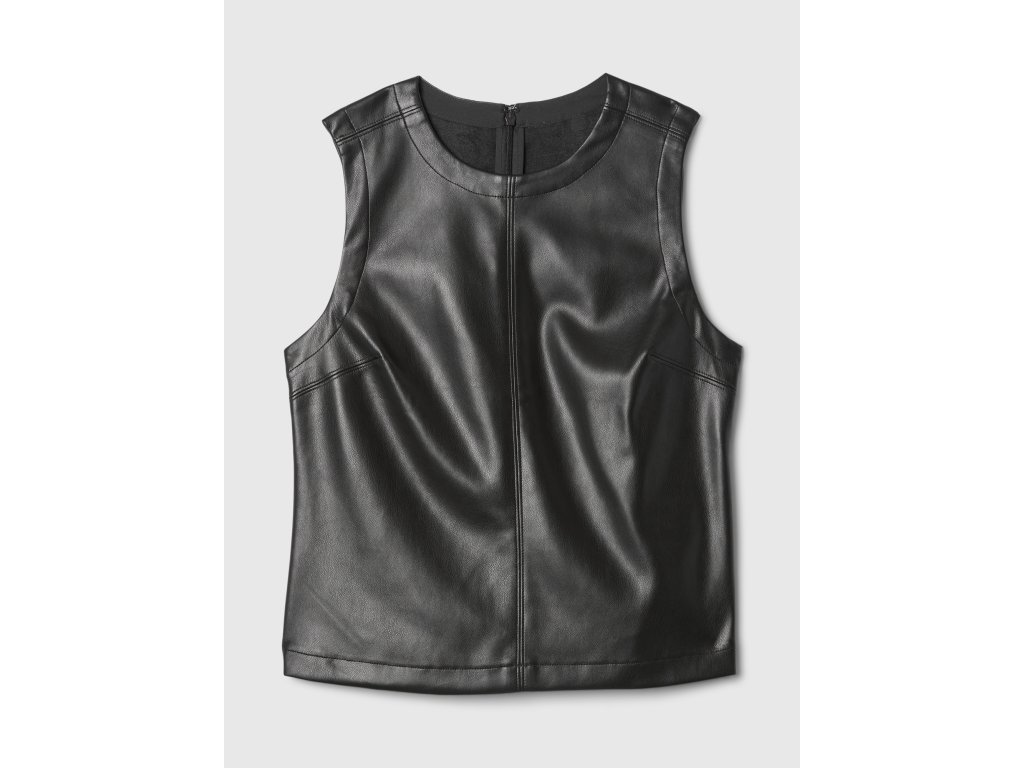 Elegantný top bez rukávov z jemnej vegánskej kože okamžite povýši každý outfit na vyššiu úroveň. Okrúhly výstrih a čistý, minimalistický strih zaisťujú nadčasový vzhľad, ktorý sa hodí pre každú príležitosť. Zapínanie na zips na chrbte uľahčuje obliekanie a zároveň zachováva elegantné línie. Priliehavý strih vytvára sofistikovanú siluetu. Dĺžka končiaca pri bokoch je ideálna pre kombináciu s nohavicami alebo sukňami. Perfektný kúsok na vytvorenie štýlového a moderného outfitu. Modelky vo veľkosti S (Gap) majú 172–180 cm, pás 60–66 cm a boky 84–97 cm. Modelky vo veľkosti XL (Gap) majú 172–180 cm, pás 86–91 cm a boky 114–127 cm.Dodatočné parametre