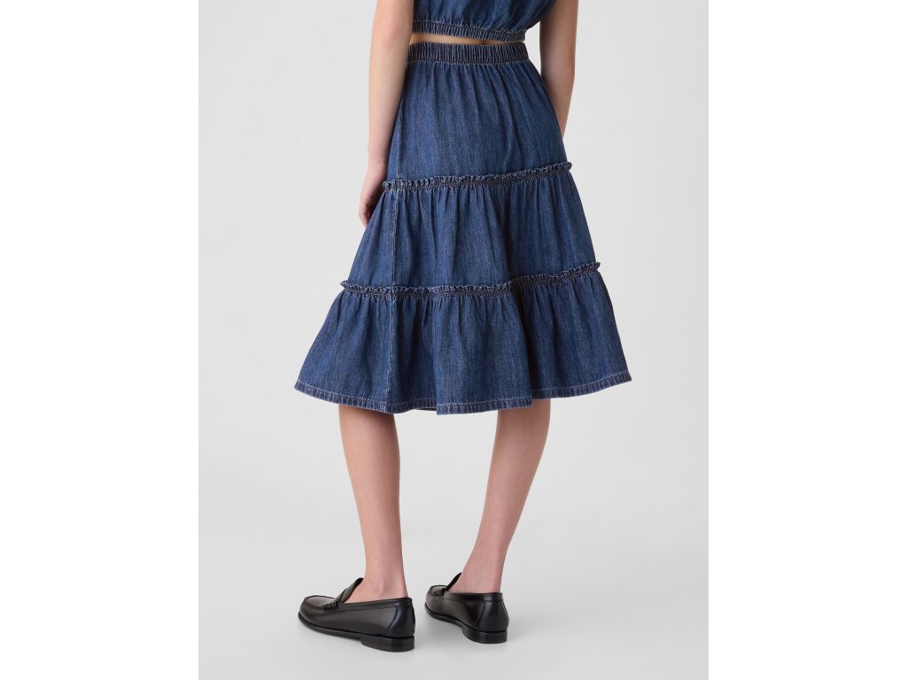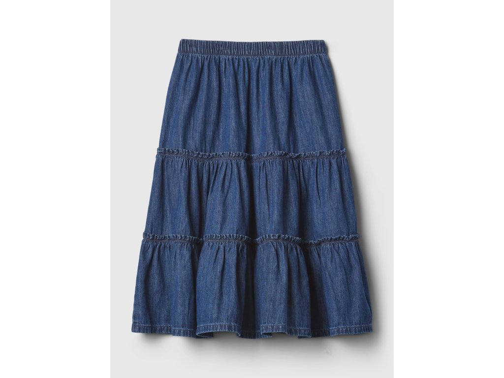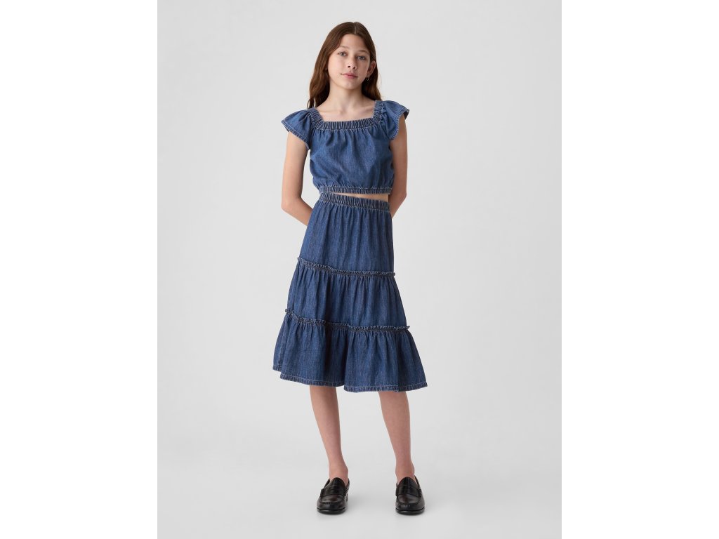 Detská džínsová midi sukne. Pružný pás a strih do A. Naberané volány. Materiál: 100% Cotton Better Cotton (Bci)Dodatočné parametre