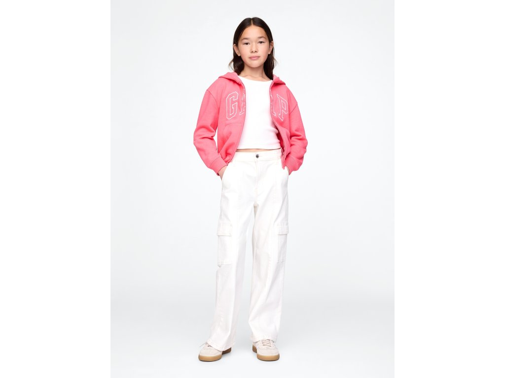 Detská mikina z mäkkého French terry materiálu je navrhnutá pre maximálne pohodlie a moderný štýl. Obsahuje 23% recyklovaného polyesteru, čo pomáha znižovať spotrebu prírodných zdrojov a redukovať odpad. Má kapucňu, zapínanie na zips a voľné spadnuté rukávy s rebrovanými manžetami, ktoré zaisťujú pohodlné nosenie. Prednú časť zdobí ikonické logo Gap, zatiaľ čo vrecká pridávajú praktický detail na každodenné použitie. Rebrovaný spodný lem pomáha mikine držať tvar, a rovný, uvoľnený strih siahajúci pod boky z nej robí ideálnu voľbu pre vrstvenie alebo nosenie s teplákmi, džínsami či legínami, čo ju robí perfektnou pre každodenné dobrodružstvo aj chvíle odpočinku.Dodatočné parametre