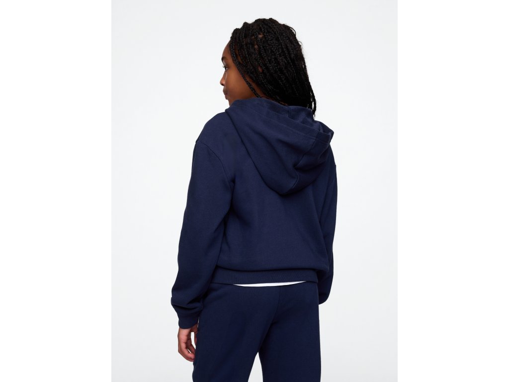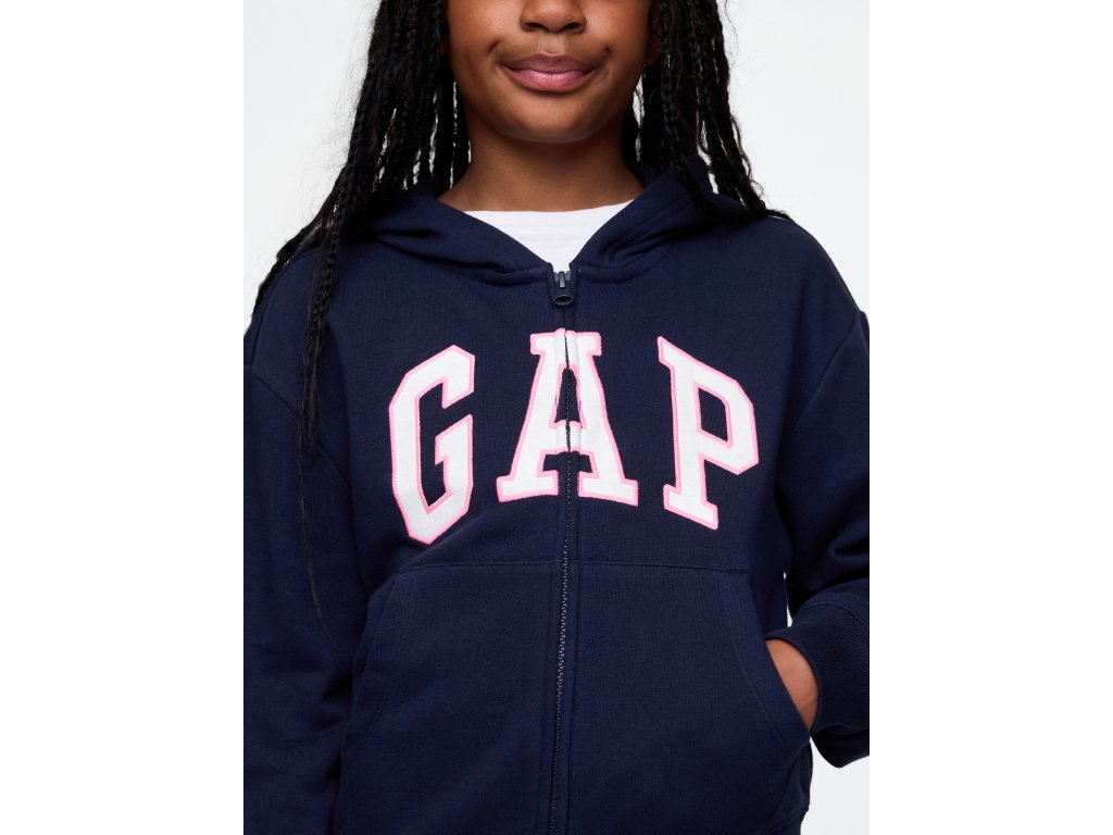 Detská mikina z mäkkého French terry materiálu je navrhnutá pre maximálne pohodlie a moderný štýl. Obsahuje 23% recyklovaného polyesteru, čo pomáha znižovať spotrebu prírodných zdrojov a redukovať odpad. Má kapucňu, zapínanie na zips a voľné spadnuté rukávy s rebrovanými manžetami, ktoré zaisťujú pohodlné nosenie. Prednú časť zdobí ikonické logo Gap, zatiaľ čo vrecká pridávajú praktický detail na každodenné použitie. Rebrovaný spodný lem pomáha mikine držať tvar, a rovný, uvoľnený strih siahajúci pod boky z nej robí ideálnu voľbu pre vrstvenie alebo nosenie s teplákmi, džínsami či legínami, čo ju robí perfektnou pre každodenné dobrodružstvo aj chvíle odpočinku.Dodatočné parametre