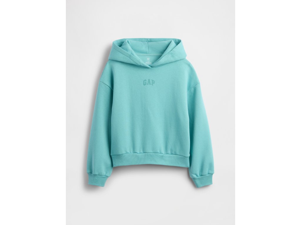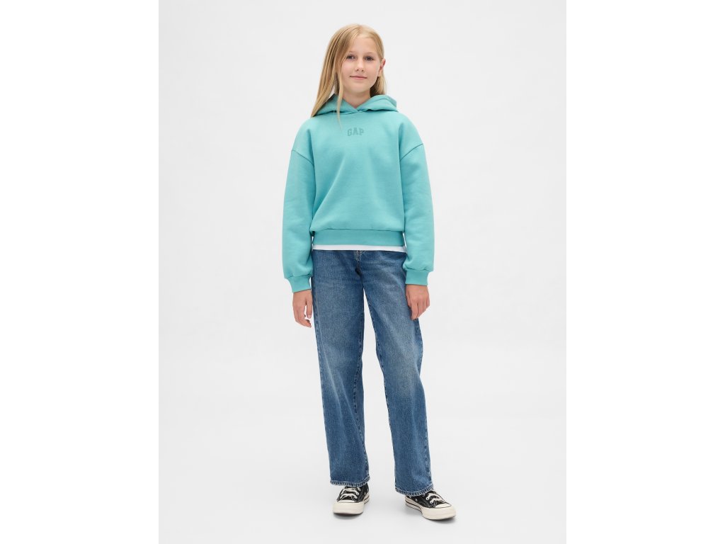 Dievčenská mikina s kapucňou z jemného fleecu ponúka celodenné pohodlie vďaka hebko česanému vnútrajšku a hladkému vonkajšiemu povrchu. Vyrobená z mäkkej bavlnenej zmesi s 23% recyklovaného polyesteru – šetrnejšia voľba voči prírodným zdrojom. Mikina má kapucňu, spadnuté ramená, dlhé rukávy s pružnými manžetami a rovný spodný lem. Prednú aj zadnú časť zdobí ikonické logo Gap. Relaxed fit zaisťuje voľný strih siahajúci ku bedrám. Vyrobené v rámci programu RISE na podporu rovnosti žien v odevnom priemysle. Pokiaľ preferujete užší strih, odporúčame zvoliť o veľkosť menšiu.Dodatočné parametre