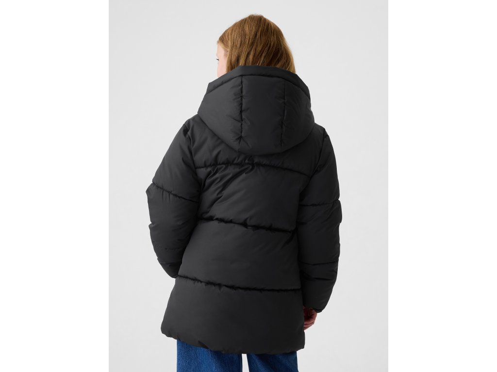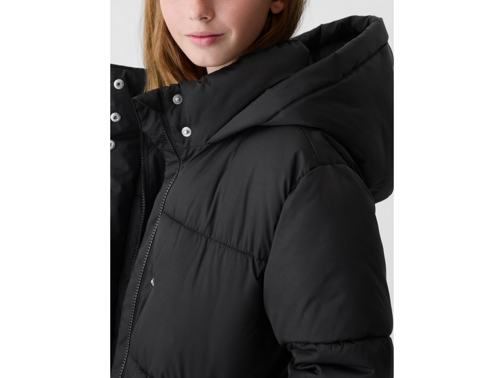 Teplá, vodeodolná prešívaná dlhá bunda pre maximálne pohodlie v chladnom počasí. Kapucňa poskytuje extra ochranu pred nepriaznivým počasím. Dlhé rukávy s elastickými manžetami. Zapínanie na gombíky s ukrytým zipsom. Predné šikmé vrecká ponúkajú praktické úložné miesto a zároveň udržujú ruky v teple. Vyrobená zo 100% recyklovaného polyesteru, čo pomáha znižovať spotrebu zdrojov a produkciu odpadu. Teplotné hodnotenie: Najvyššia úroveň tepla, ideálna pre teploty od -23,4 až -8,6 stupňov C. Naša najteplejšia bunda s vysoko výkonnou izoláciou udrží vaše dieťa v teple aj počas najchladnejších dobrodružstiev. Rovný, pohodlný strih. Bunda siaha pod bokmi.Dodatočné parametre