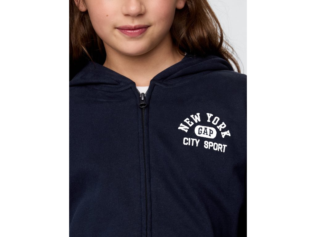Detská mikina z materiálu French terry s bavlnenou zmesou je ideálnou voľbou pre pohodlný a štýlový outfit. Je vybavená kapucňou, zapínaním na zips a farebne blokovanými rukávmi s voľne spadnutými ramenami, ktoré dodávajú moderný a trendy vzhľad. Rebrované manžety a praktické vrecká zaisťujú funkčnosť a pohodlie. Na prednej strane mikiny sa nachádza logo Gap Sport. Mikina je vyrobená z 23% recyklovaného polyesteru, čo pomáha znižovať plytvanie zdrojmi a prispieva k ochrane životného prostredia. Oversize strih je voľný a pohodlný, ideálny pre aktívne dni. Pokiaľ preferujete užší strih, odporúčame zvoliť o jednu až dve veľkosti menšie.Dodatočné parametre