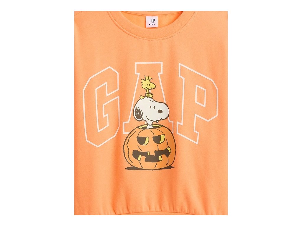 Detská mikina z mäkkého hrejivého fleecu. Má okrúhly výstrih, spadnuté ramená a dlhé rukávy s rebrovanými manžetami. Prednú stranu zdobí logo Gap s halloweenskym motívom Snoopyho. Strih Oversize je voľnejší po celom tele. Dĺžka pod bokmi.Viac z kolekcie GAP & Peanuts Snoopy > .