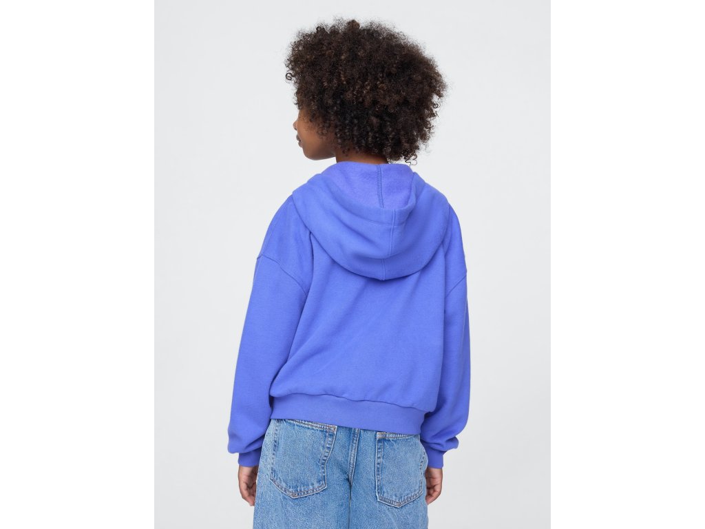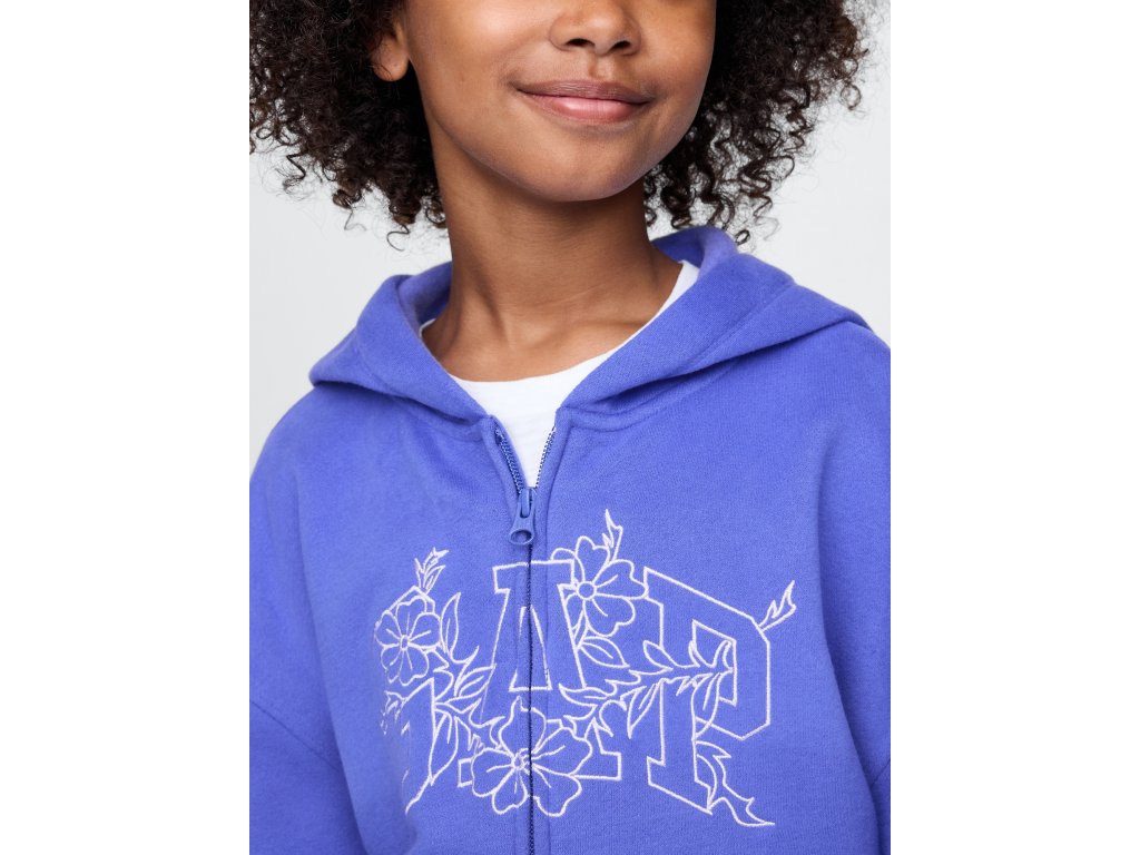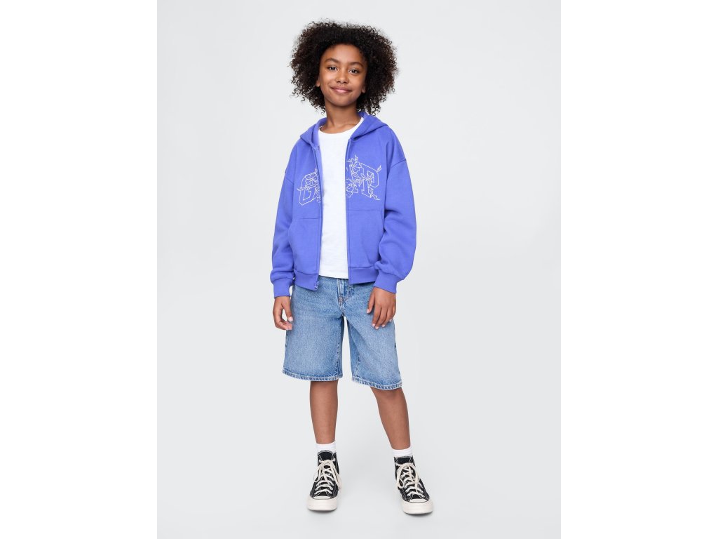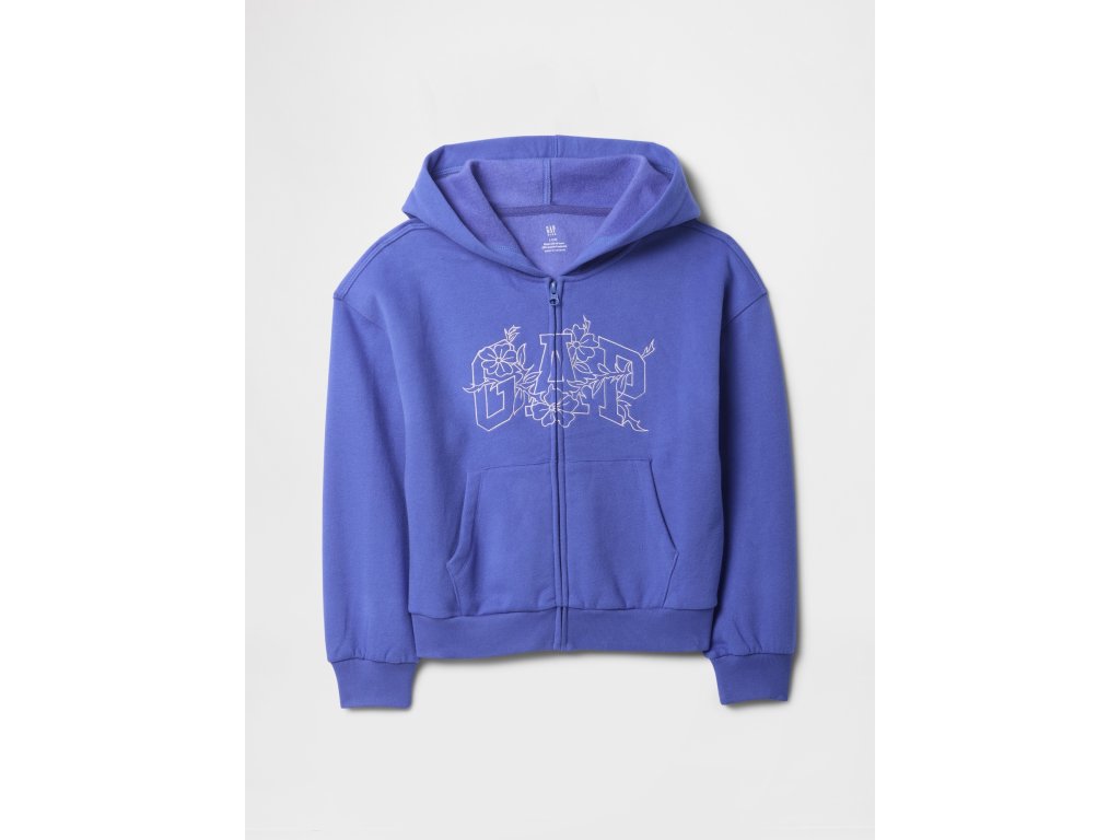 Pohodlná detská oversize mikina na zips z mäkkej zmesi bavlny a fleecu je ideálnou voľbou pre ležérny štýl a maximálne pohodlie. Má kapucňu, dlhé rukávy s rebrovanými manžetami a zapínanie na zips po celej dĺžke. Praktické klokanie vrecká ponúkajú dostatok priestoru na drobnosti alebo zahriatie rúk. Na prednej strane sa nachádza ikonické logo Gap, ktoré dodáva mikine moderný vzhľad. Vyrobená s 23% recyklovaného polyesteru, táto mikina prispieva k znižovaniu spotreby zdrojov a odpadu. Produkt vznikol vo výrobnom závode podporujúcom rodovú rovnosť a posilňovanie postavenia žien prostredníctvom programov RISE a P.A.C.E. od Gap Inc. Oversized strih poskytuje voľnosť a uvoľnený štýl. Dĺžka siaha k bokom, čo z nej robí skvelý kúsok na vrstvenie aj samostatné nosenie. Ideálne na relaxáciu, voľnočasové aktivity alebo každodenné nosenie. Pokiaľ preferujete užší strih, odporúčame zvoliť menšiu veľkosť.Dodatočné parametre