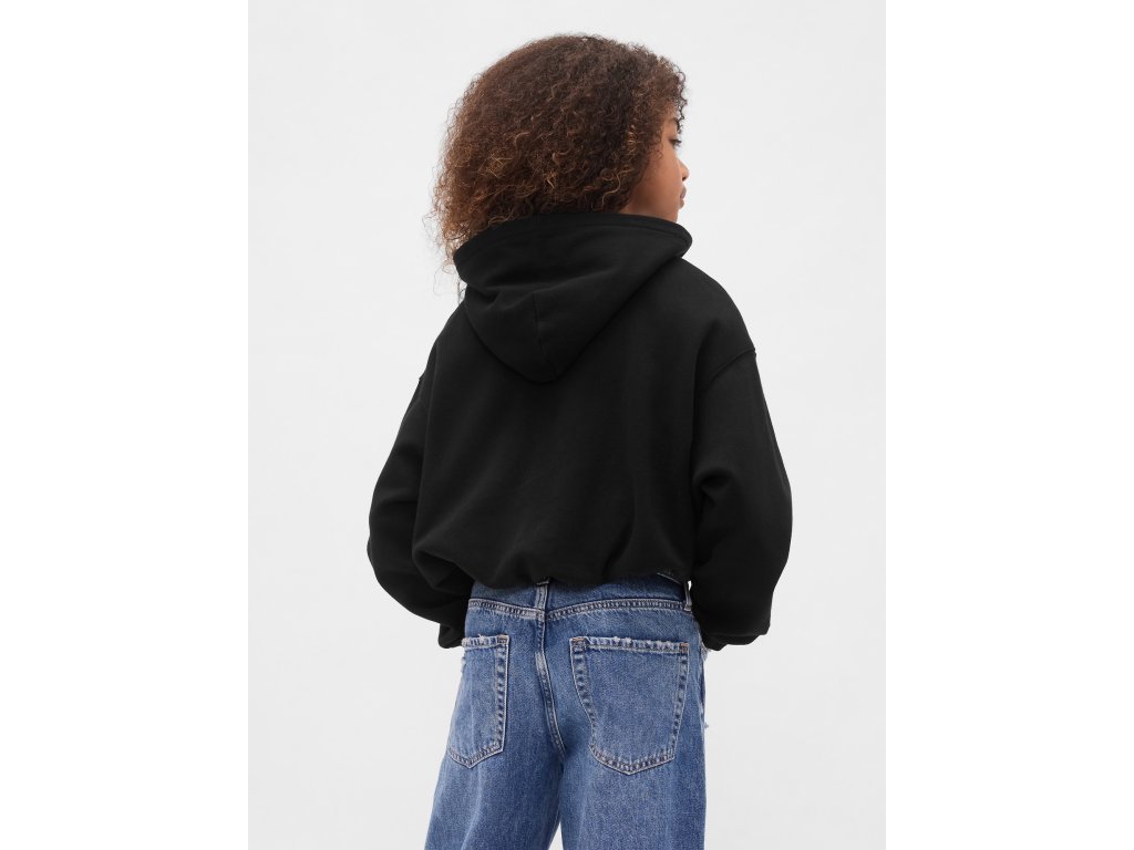 Dievčenská mikina s kapucňou, ktorá spája štýl a pohodlie v jednom. Je ušitá z ultra mäkkého fleecu s česanou vnútornou stranou, ktorá krásne hreje a je hebká na dotyk. Zvonku je mikina hladká a príjemná. Kapucňa, spadnuté ramená a dlhé rukávy s pružnými manžetami zaručujú maximálne pohodlie pri nosení. Lem v spodnej časti dodáva mikine hravý a moderný vzhľad, ktorý si deti zamilujú. Oversize strih ponúka voľnosť pohybu a ležérnu siluetu. Mikina siaha zhruba ku bedrám. Vyrobené v továrni zapojenej do programu RISE na podporu rovnosti žien v odevnom priemysle. Ak preferujete užší strih, odporúčame zvoliť o jednu až dve veľkosti menšie.Dodatočné parametre