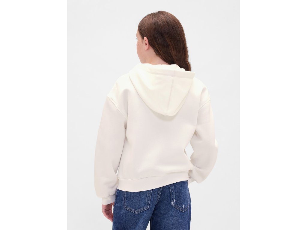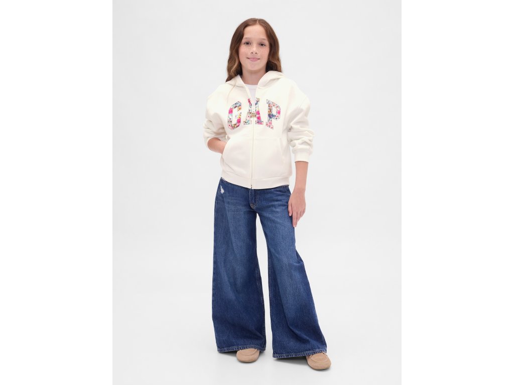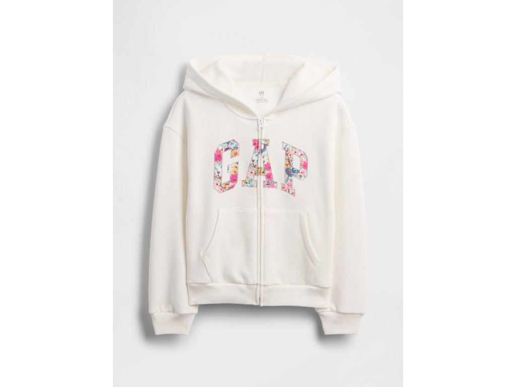 Dievčenská mikina na zips s kvetinovým logom Gap je hebká, pohodlná a ideálna na každodenné nosenie. Vyrobená z mimoriadne mäkkého fleecu, ktorý je zvonku hladký a vo vnútri jemne česaný pre maximálny komfort. Každý kus je originál vďaka špeciálnemu spracovaniu materiálu. Zmes bavlny a 23% recyklovaného polyesteru pomáha znižovať spotrebu surovín a množstvo odpadu. Mikina má kapucňu, zips, spadnuté ramená, dlhé rukávy a rebrované manžety, ktoré dobre držia tvar. Prednú stranu zdobí výrazné oblúkové logo Gap s kvetinovou potlačou, nechýba ani praktické klokankové vrecko. Spodný lem je rebrovaný. Vyrobené v továrni zapojenej do iniciatívy RISE, ktorá podporuje rovnosť žien v odevnom priemysle. Oversize strih je voľný a siaha ku bedrám. Pokiaľ preferujete užší strih, odporúčame zvoliť o jednu až dve veľkosti menšie.Dodatočné parametre