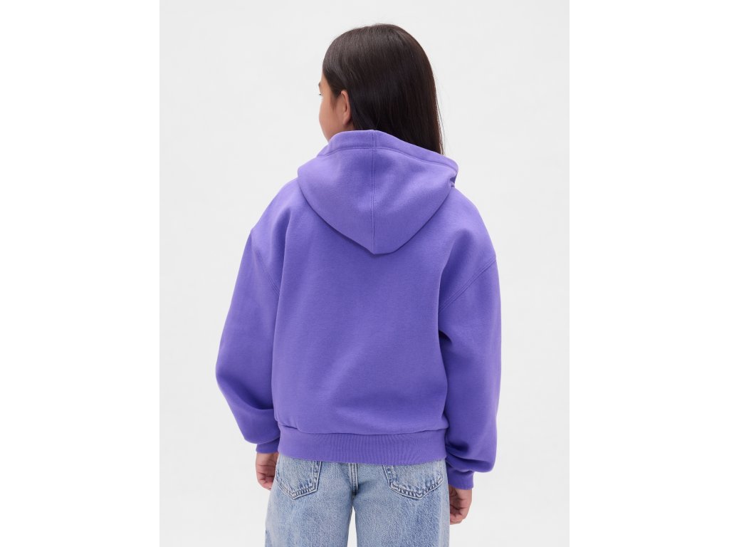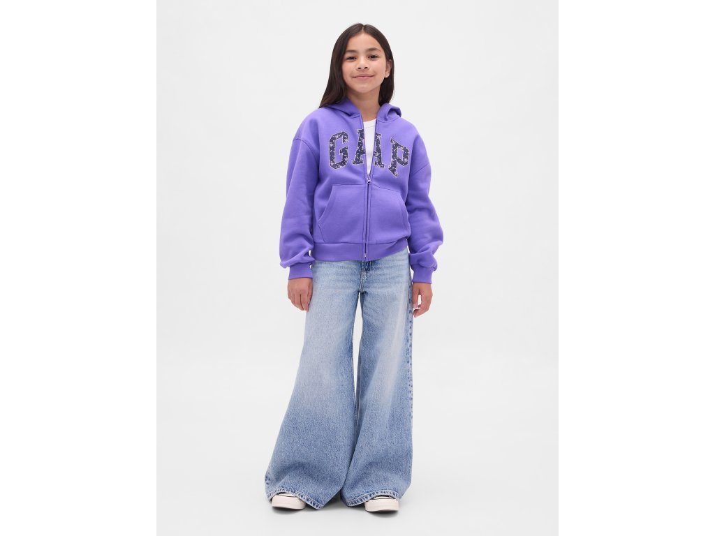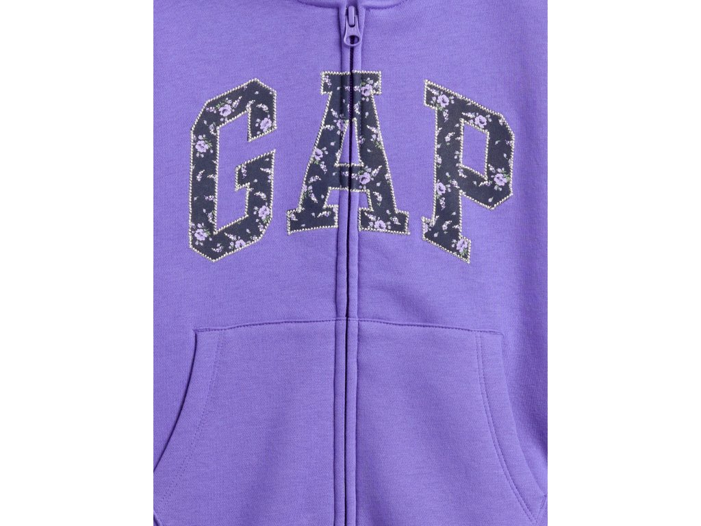 Dievčenská mikina na zips s kvetinovým logom Gap je hebká, pohodlná a ideálna na každodenné nosenie. Vyrobená z mimoriadne mäkkého fleecu, ktorý je zvonku hladký a vo vnútri jemne česaný pre maximálny komfort. Každý kus je originál vďaka špeciálnemu spracovaniu materiálu. Zmes bavlny a 23% recyklovaného polyesteru pomáha znižovať spotrebu surovín a množstvo odpadu. Mikina má kapucňu, zips, spadnuté ramená, dlhé rukávy a rebrované manžety, ktoré dobre držia tvar. Prednú stranu zdobí výrazné oblúkové logo Gap s kvetinovou potlačou, nechýba ani praktické klokankové vrecko. Spodný lem je rebrovaný. Vyrobené v továrni zapojenej do iniciatívy RISE, ktorá podporuje rovnosť žien v odevnom priemysle. Oversize strih je voľný a siaha ku bedrám. Pokiaľ preferujete užší strih, odporúčame zvoliť o jednu až dve veľkosti menšie.Dodatočné parametre