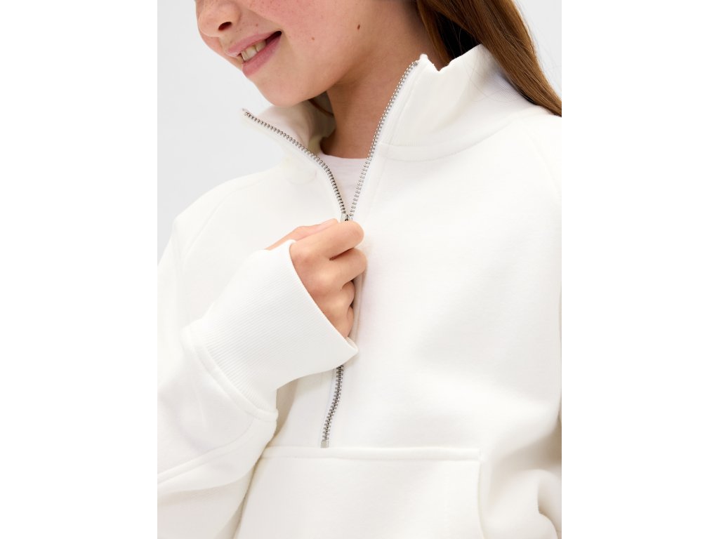 Detská športová mikina z jemného funkčného úpletu je navrhnutá pre maximálne pohodlie a moderný športový vzhľad. Ľahký a hladký materiál s jemným leskom pripomína neoprén a poskytuje výbornú pružnosť aj odolnosť. Ideálne pre aktívne dni, keď deti potrebujú voľnosť pohybu a zároveň štýlový vzhľad. Stojačik so zapínaním na zips do polovice umožňuje ľahké obliekanie a reguláciu teploty. Dlhé raglánové rukávy s rebrovanými manžetami zaisťujú komfortný strih. Klokanie vrecko ponúka priestor pre drobnosti aj zahriatie rúk. Rebrovaný spodný lem pomáha mikine lepšie sedieť na tele. Výroba prebieha v rámci programov RISE a P.A.C.E., ktoré podporujú rodovú rovnosť a ich profesijný rozvoj. Relaxed fit poskytuje rovný, pohodlný strih. Ak preferujete užší strih, odporúčame zvoliť o jednu veľkosť menšiu.Viac z kolekcia GapFit >.