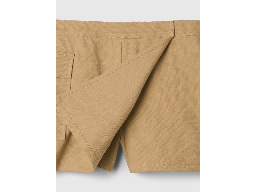 Hladká tkaná kraťasová sukňa z bavlneno-tencelovej zmesi. Elastický pás vzadu, skryté zapínanie na háčik a očko vpredu. Bočné vrecko. Vnútorné kraťasy, predná časť v štýle zavinovania. Klasický, pohodlný strih. Dĺžka nad kolená.Dodatočné parametre