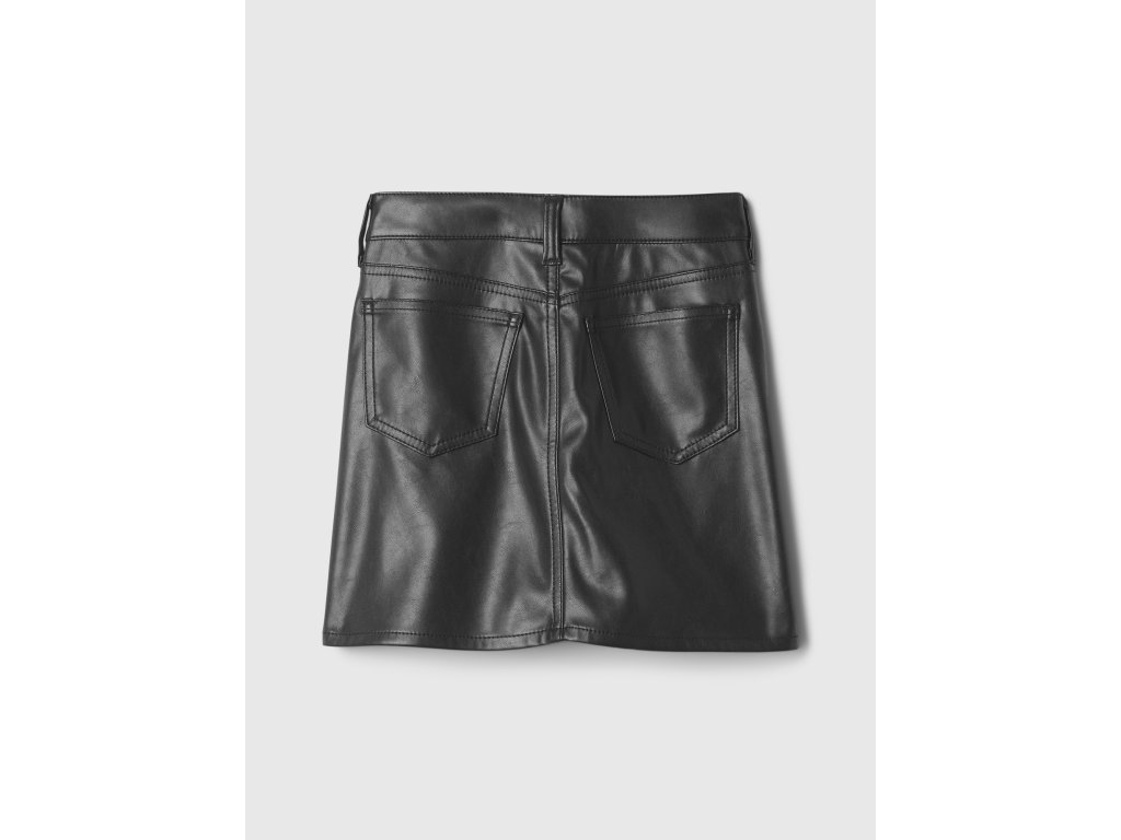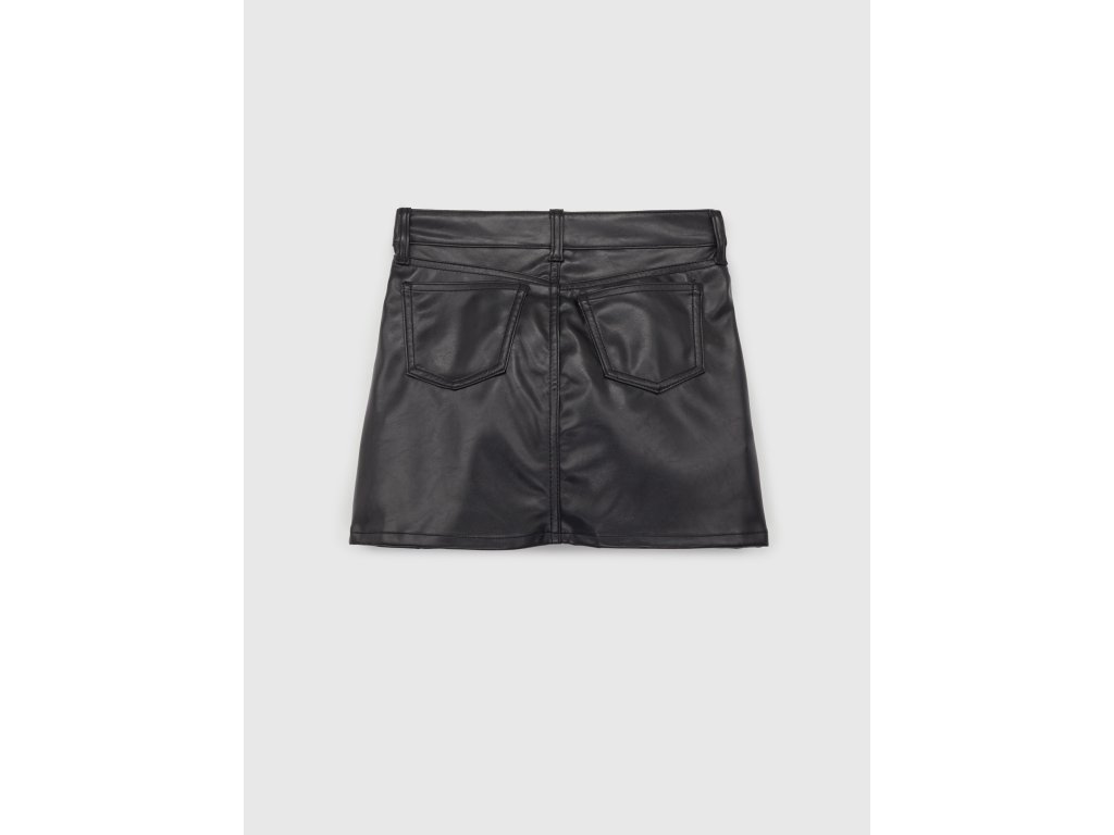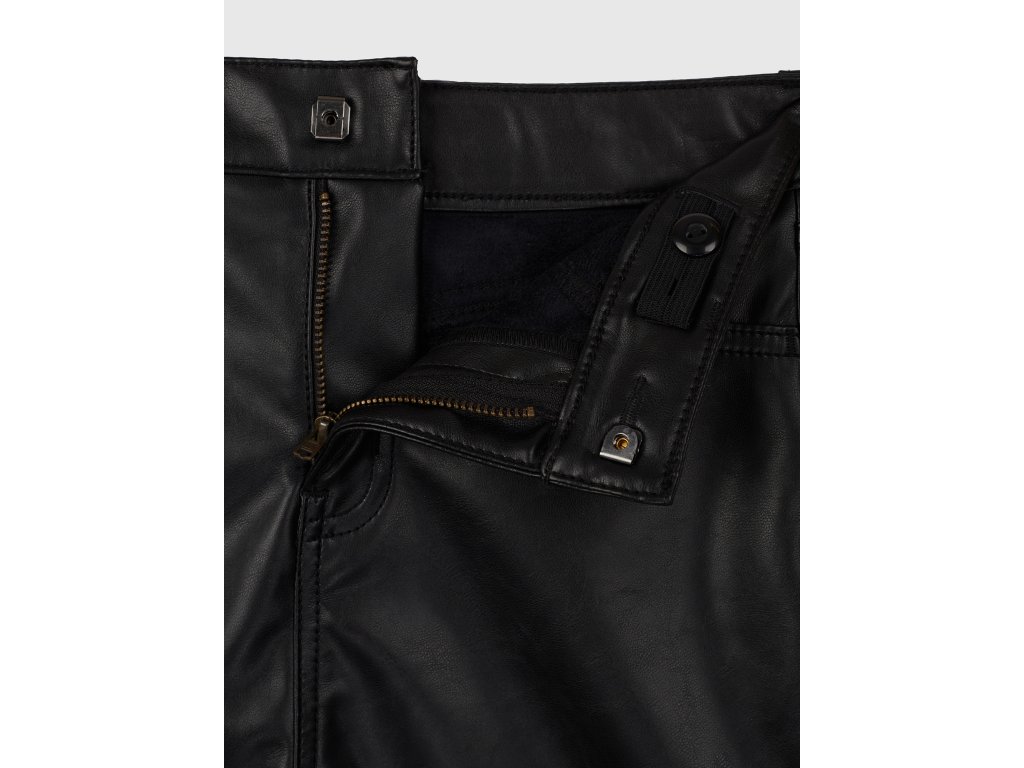 Štýlová sukňa vyrobená zo 100% recyklovaného polyesteru, čo znižuje spotrebu zdrojov a minimalizuje odpad. Hladký povrch z vegánskej kože prináša moderný vzhľad. Sukňa má zapínanie na gombík vpredu, pri veľkostiach 4-8 navyše s háčikom pre ľahké obliekanie, a zips. Predné šikmé vrecká a zadné našité vrecká zaisťujú funkčnosť. Skrytý nastaviteľný pás umožňuje perfektné prispôsobenie. Strih je voľnejší v oblasti bokov a stehien pre pohodlné nosenie.Dodatočné parametre
