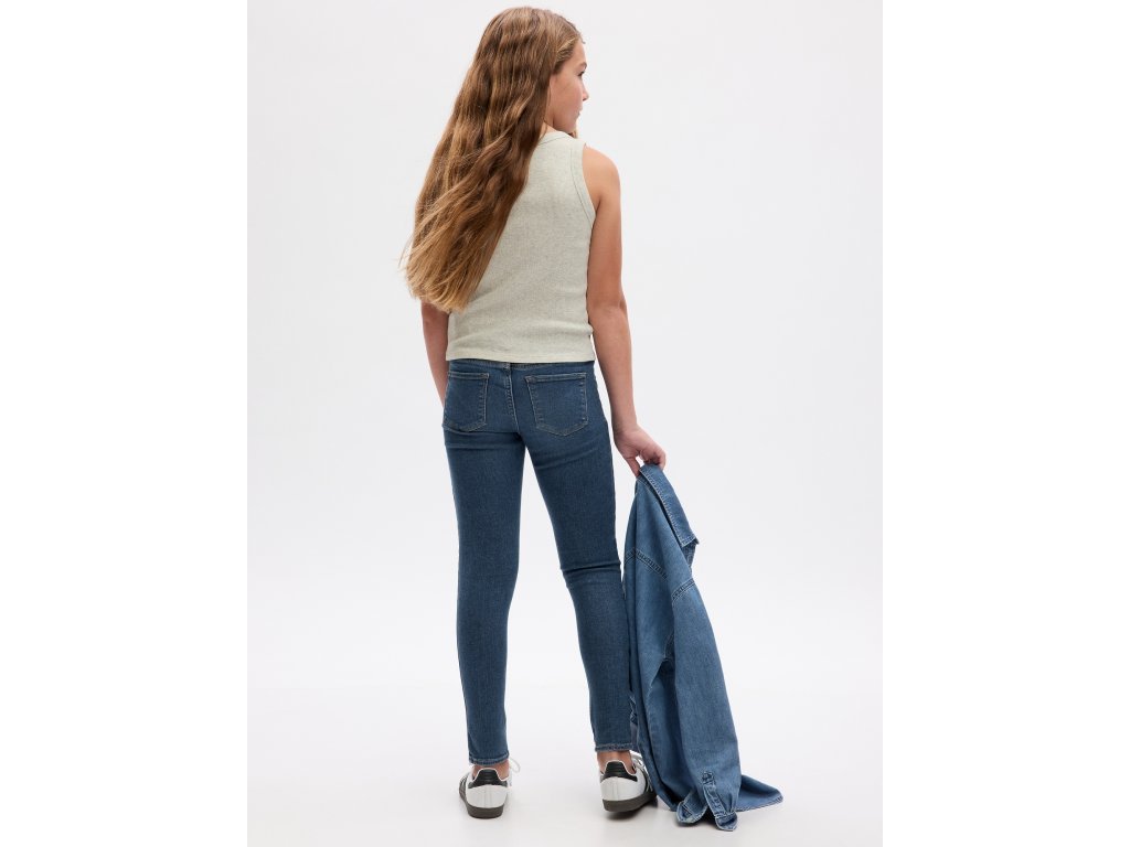 Dievčenské naťahovacie džínsy Gap. Pohodlné džínsy v strihu jeggings. Elastický pás, vrecká a pútka na opasok. Príjemný materiál s prímesou 5% recyklovanej bavlny.Dodatočné parametre