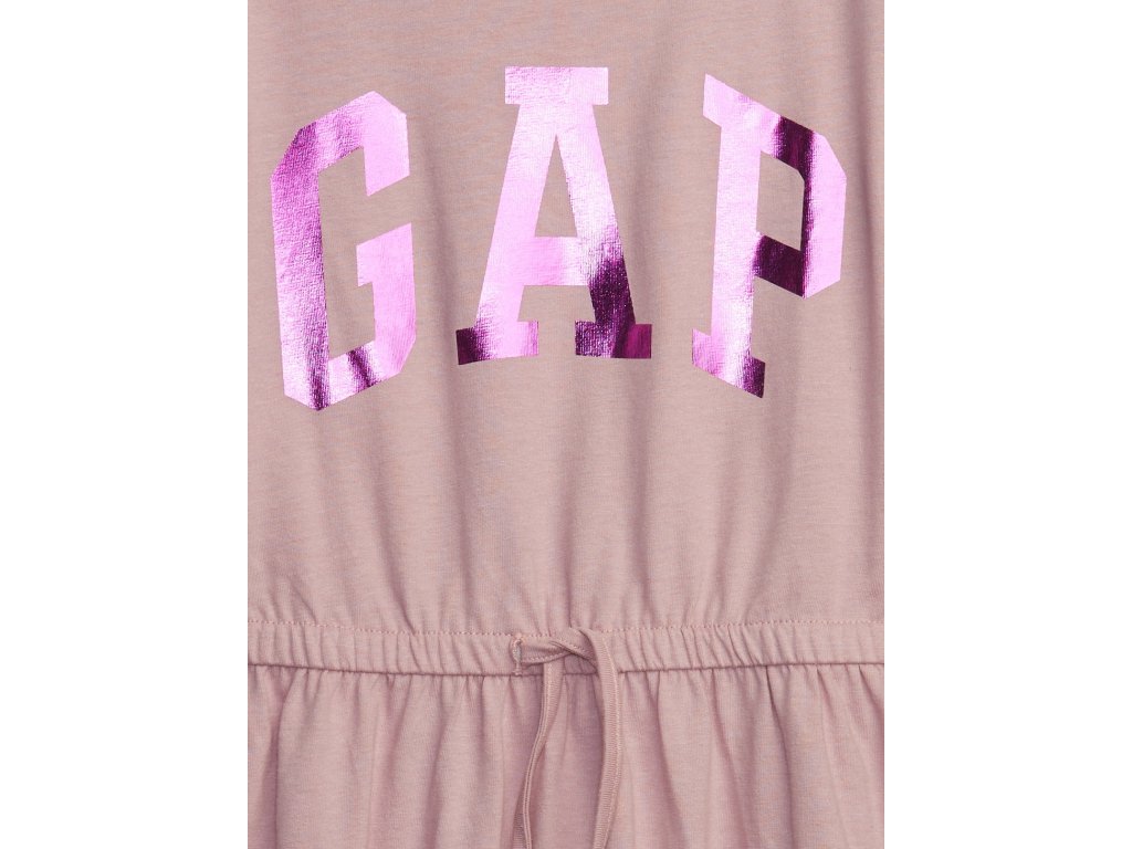 Dievčenské jednofarebné šaty. Mäkký bavlnený úplet. Metalické logo Gap. Okrúhly výstrih a dlhé rukávy. Pružný pás so sťahovacou šnúrkou.Dodatočné parametre