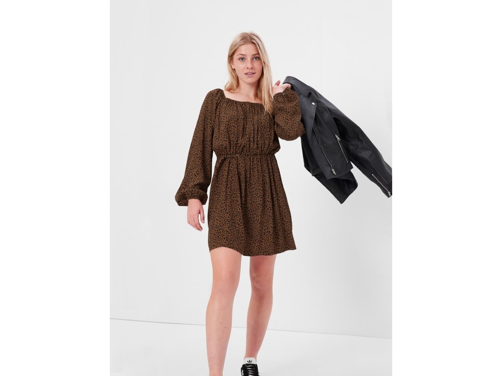 Štýlové, pohodlné a šetrné k planéte – tieto šaty obsahujú 50% vlákien LENZING™ ECOVERO™, ktoré sa vyrábajú z certifikovaných obnoviteľných zdrojov dreva. Výroba týchto vlákien je ekologickejšia a prispieva k udržateľnejšej móde. Šaty majú štvorcový výstrih a dlhé rukávy, čo im dodáva jemný, elegantný vzhľad. Žabičkované riasenie na hrudi nielen krásne zvýrazní strih, ale taktiež zaistí pohodlné prispôsobenie. Vybrané varianty sú zdobené celoplošnými vzormi, ktoré dodávajú hravý a jedinečný nádych. Súčasť kolekcie, ktorá pomáha šetriť vodu, znižovať množstvo odpadu a podporovať zodpovednejšiu výrobu. Noste ich s radosťou a prispejte k pozitívnej zmene. Šaty majú lichotivý strih Fit & Flare, ktorý krásne splýva a poskytuje voľnosť pohybu. Dĺžka siaha ku kolenám.Dodatočné parametre