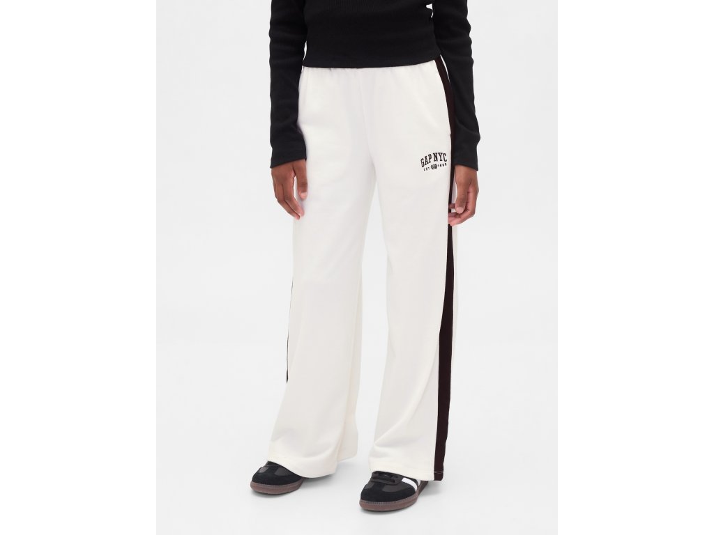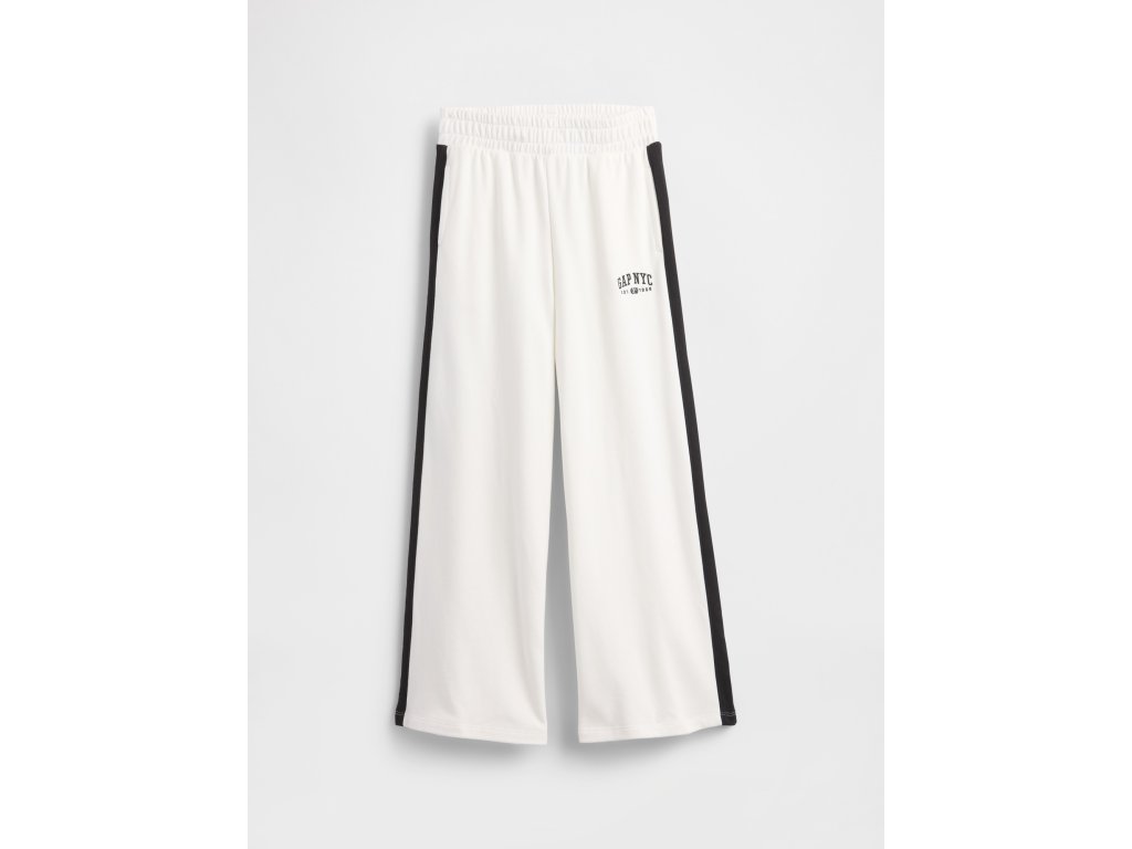 Dievčenské tepláky, ktoré sú navrhnuté tak, aby boli extra mäkké a maximálne pohodlné – zvonku hladké, vo vnútri jemne česané, takže pôsobia hebko na dotyk a príjemne hrejú. Každý kus je vďaka špeciálnemu spracovaniu jedinečný. Materiál tvorí mäkký materiál French terry z bavlny, ktorý je ľahký, priedušný a vhodný na celodenné nosenie. Štýlové prevedenie dopĺňa elastický pás pre ľahké obliekanie, bočné vrecká, pruhované lemovanie po stranách a logo Gap NYC na stehne. Podiel 23% recyklovaného polyesteru pomáha šetriť prírodné zdroje. Tento model pochádza z továrne zapojenej do programu RISE, ktorý podporuje rodovú rovnosť a posilnenie postavenia žien. Relaxed fit strih je pohodlný a voľný po celej dĺžke, baggy nohavice so širokým zakončením.Dodatočné parametre