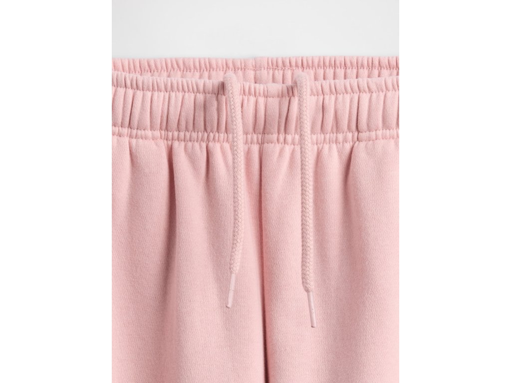 Dievčenské tepláky z jemnej teplákoviny ponúkajú celodenné pohodlie – zvonku hladké, vo vnútri hebko česané, ideálne na voľný čas aj domáci odpočinok. Vyrobené zo zmesi bavlny a 23% recyklovaného polyesteru, ktorý prispieva k šetrnejšiemu využívaniu prírodných zdrojov. Pružný pás so skrytými sťahovacími šnúrkami umožňuje pohodlné prispôsobenie, bočné vrecká a elastické lemy nohavíc zaisťujú voľnosť pohybu. Prednú časť zdobí decentné logo Gap. Strih Relaxed fit je voľný po celej dĺžke, nohavice siahajú ku členkom.Dodatočné parametre