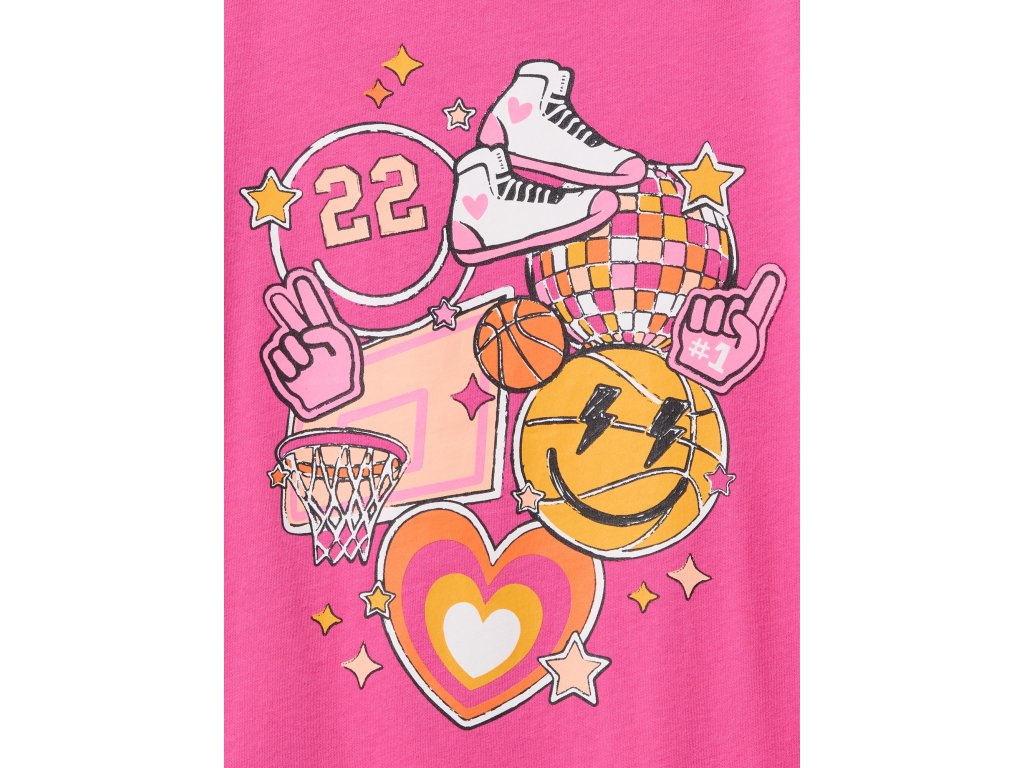 Dievčenské tričko z mäkkého džerseja je ideálne na každodenné nosenie. Krátke rukávy, okrúhly výstrih a rovný strih zaisťujú pohodlie a voľnosť pohybu. Štýlové grafické motívy na prednej strane dodávajú tričku hravý a moderný vzhľad. Dĺžka siahajúca k bokom umožňuje ľahké kombinovanie s legínami, šortkami alebo sukňou. Skvelá voľba pre školské dni aj voľnočasové aktivity.Dodatočné parametre