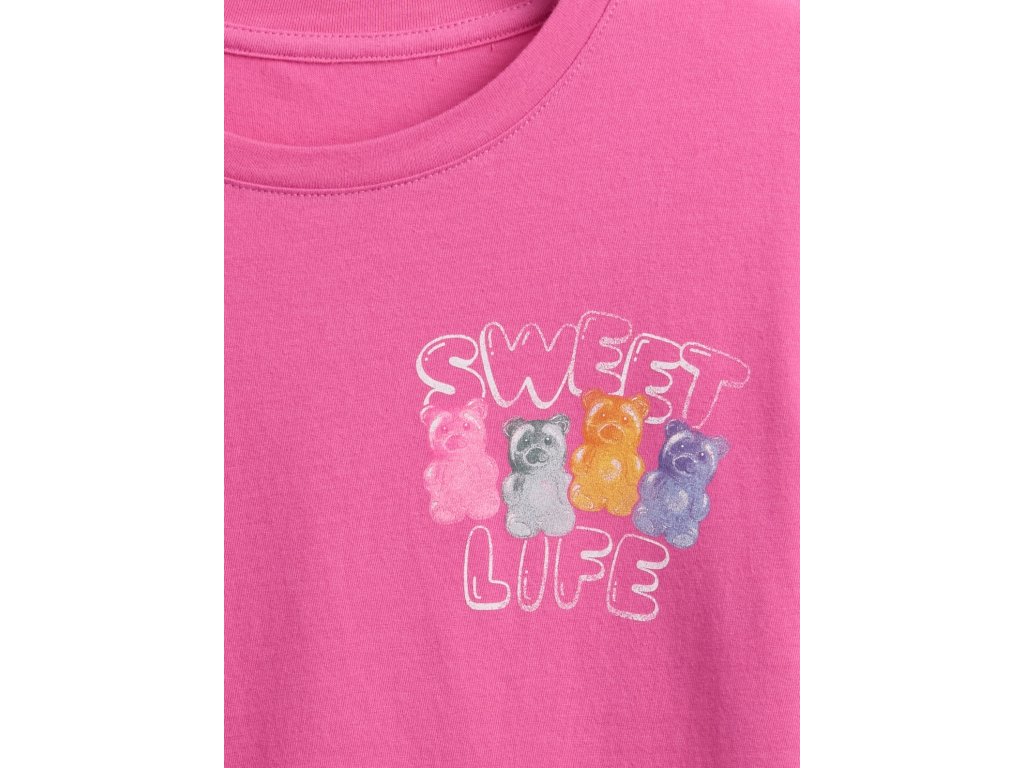 Dievčenské tričko z mäkkej bavlny prináša pohodlie aj štýl pre každý deň. Má okrúhly výstrih, krátke rukávy a prednú stranu zdobí grafika v rôznych dizajnoch. Relaxed strih s rovnou siluetou siaha ku bedrám a ponúka voľnosť pohybu. Tento produkt pochádza z výrobne zapojenej do programu RISE na podporu rovnosti žien. Pre užší vzhľad odporúčame zvoliť o číslo menšiu veľkosť.Dodatočné parametre