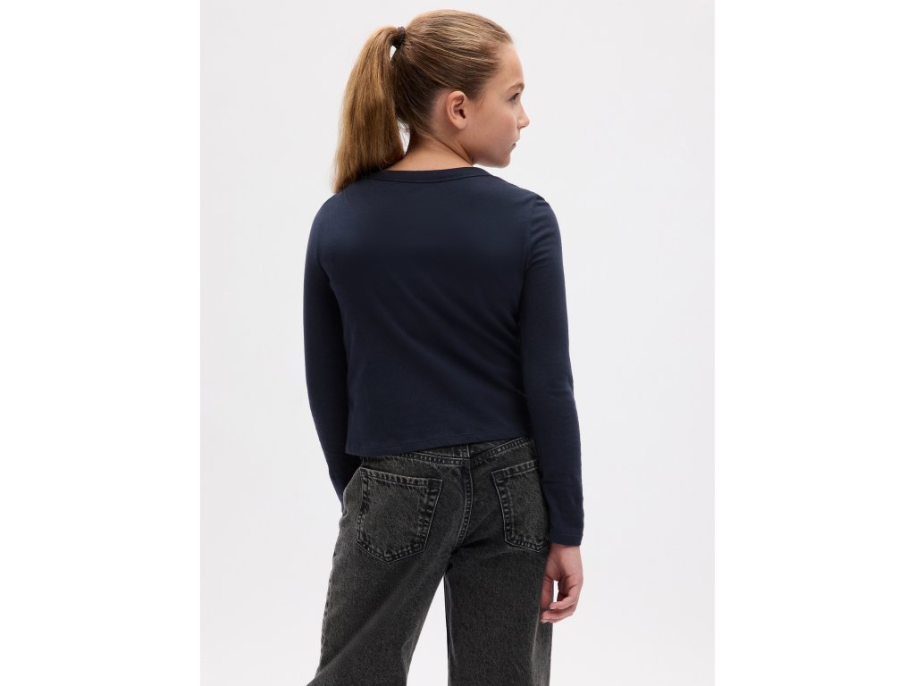 Detské tričko s dlhým rukávom. S metalickým logom. Okrúhly výstrih. Rovný strih.Dodatočné parametre