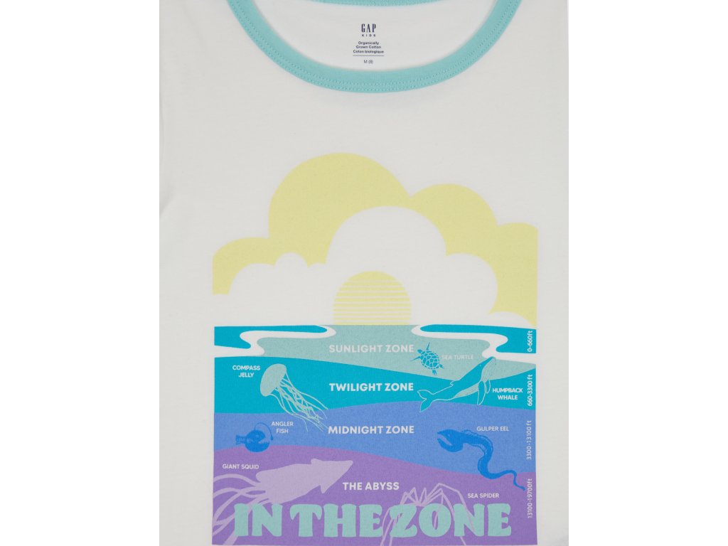 Detské tričko s potlačou. Krátke rukávy a okrúhly výstrih. Rovný strih. Z organickej bavlny.Dodatočné parametre